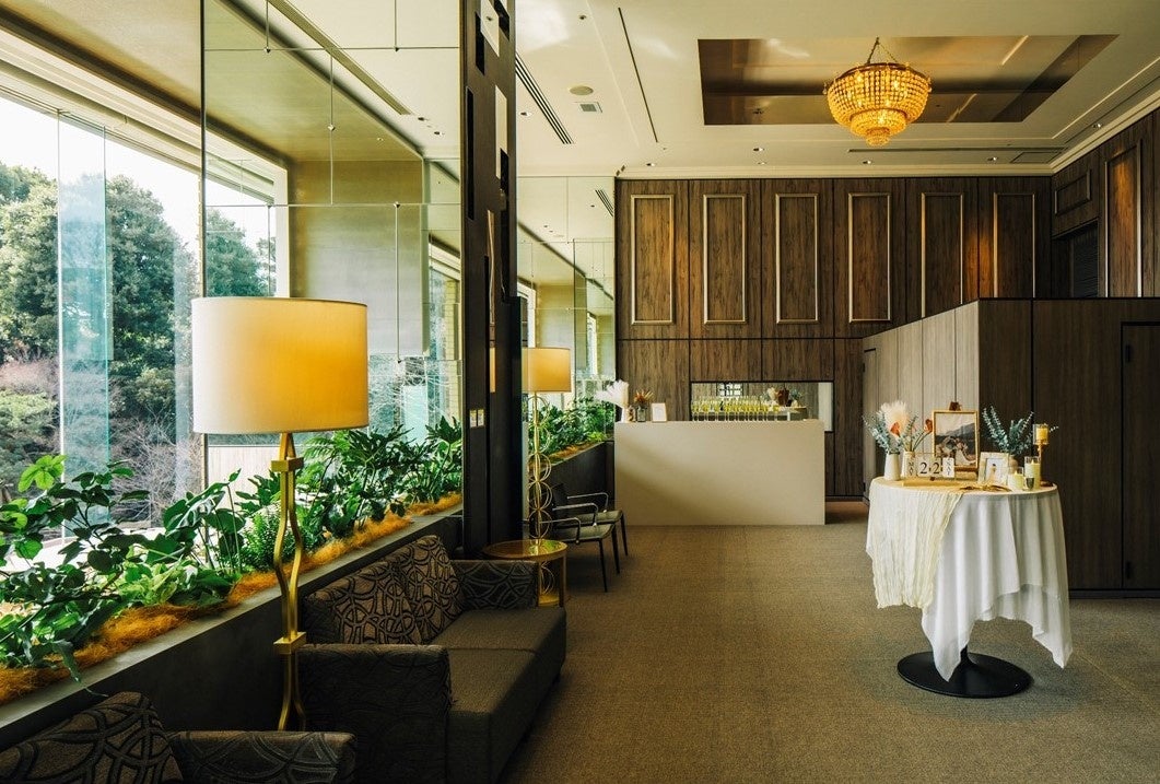 また、2025年3月にはバンケット棟3階の披露宴会場「有明」もリニューアルを実施。テーマを「NOOK」と掲げ、隠れ家のような小さな空間を意味し、有明の特徴的な大きなガラス越しに広がる庭園を感じながら、居心地のよいおふたりとゲストだけの隠れ家をイメージ。