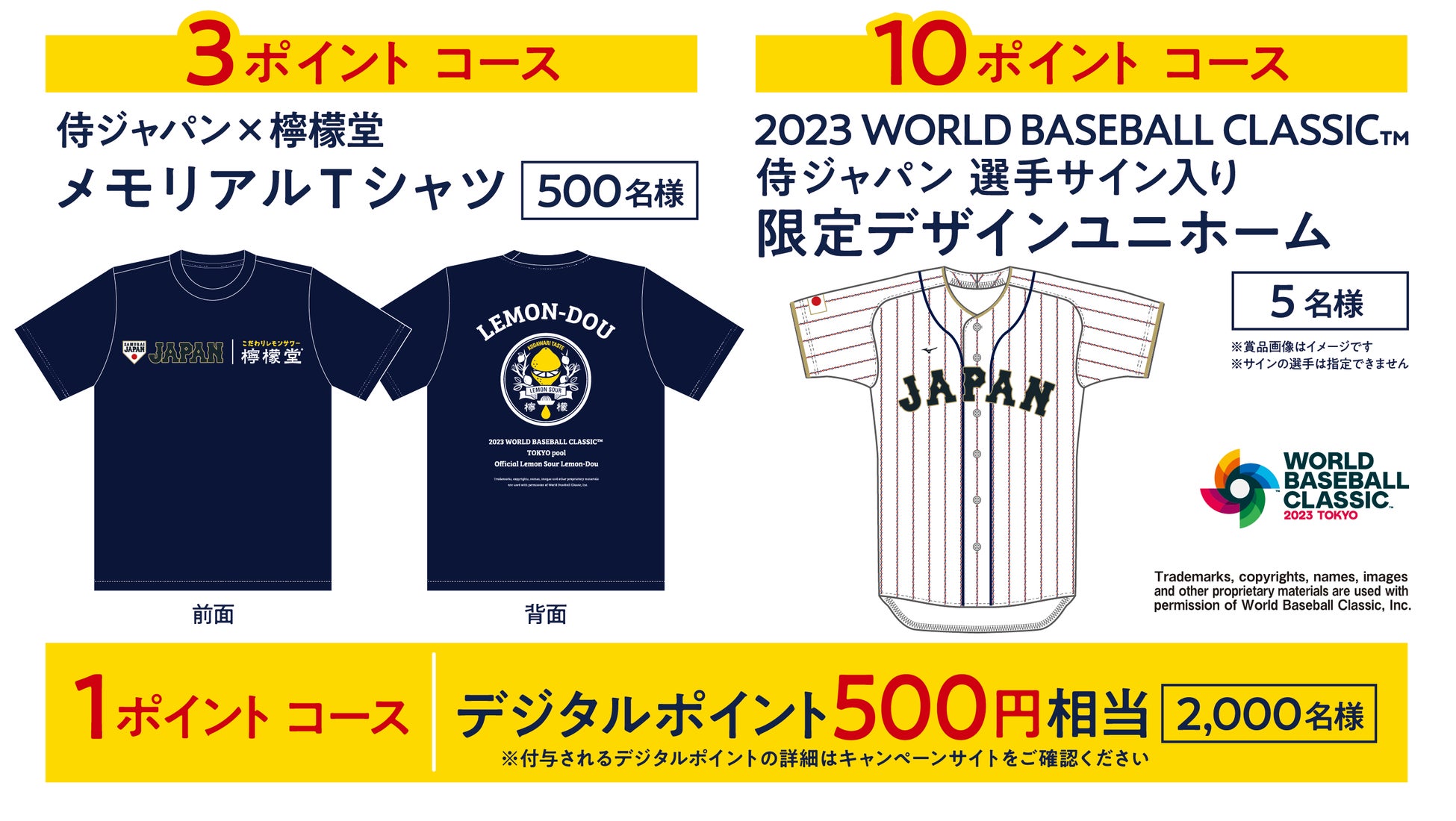 | 3ポイントコース | 侍ジャパン×檸檬堂 メモリアルTシャツ | 500名 |