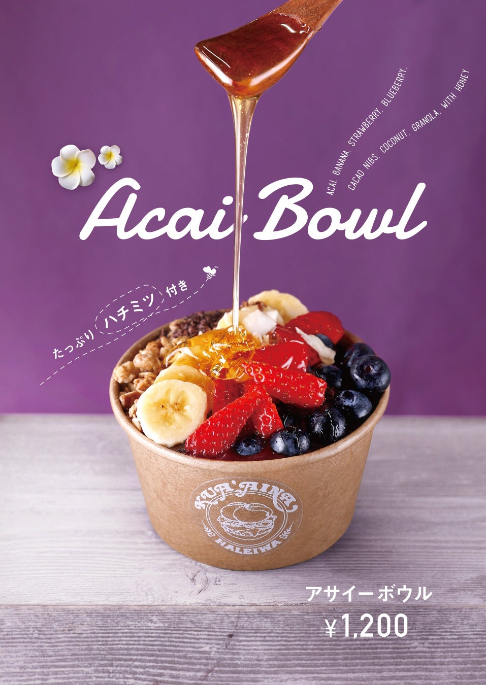 *クア・アイナではブラジル原産のフルッタフルッタの濃厚アサイーを使用しています。