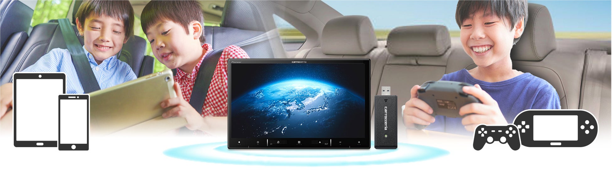 本機は「車内Wi-Fiスポット」機能※1を搭載し、車内でインターネット通信量を気にすることなくスマートフォンやタブレットなどで動画や音楽のストリーミング再生、オンラインゲームを楽しめるとともに、スマートフォンなどをミラーリング接続することで、HD画質の高精細な映像を大画面で楽しむことができます。