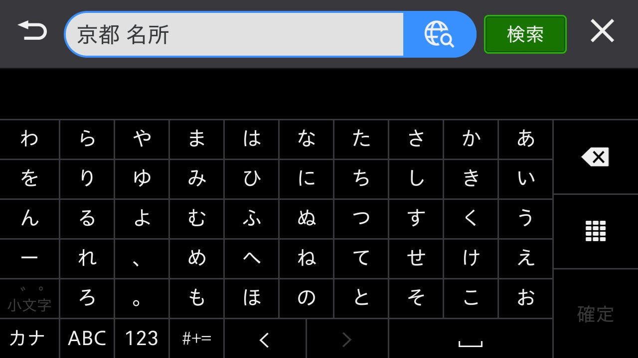 使い慣れたインターネット検索のように思いついたキーワードを入力するだけで最新スポットの検索が可能。ジャンル、場所などに関するキーワードや住所、電話番号、郵便番号なども同じ検索ウィンドウに入力することで最新情報を検索できます。また、文字入力はフリック入力に対応し、一文字入力するごとに変換候補を表示するので、よりスピーディーな文字入力が可能です。
