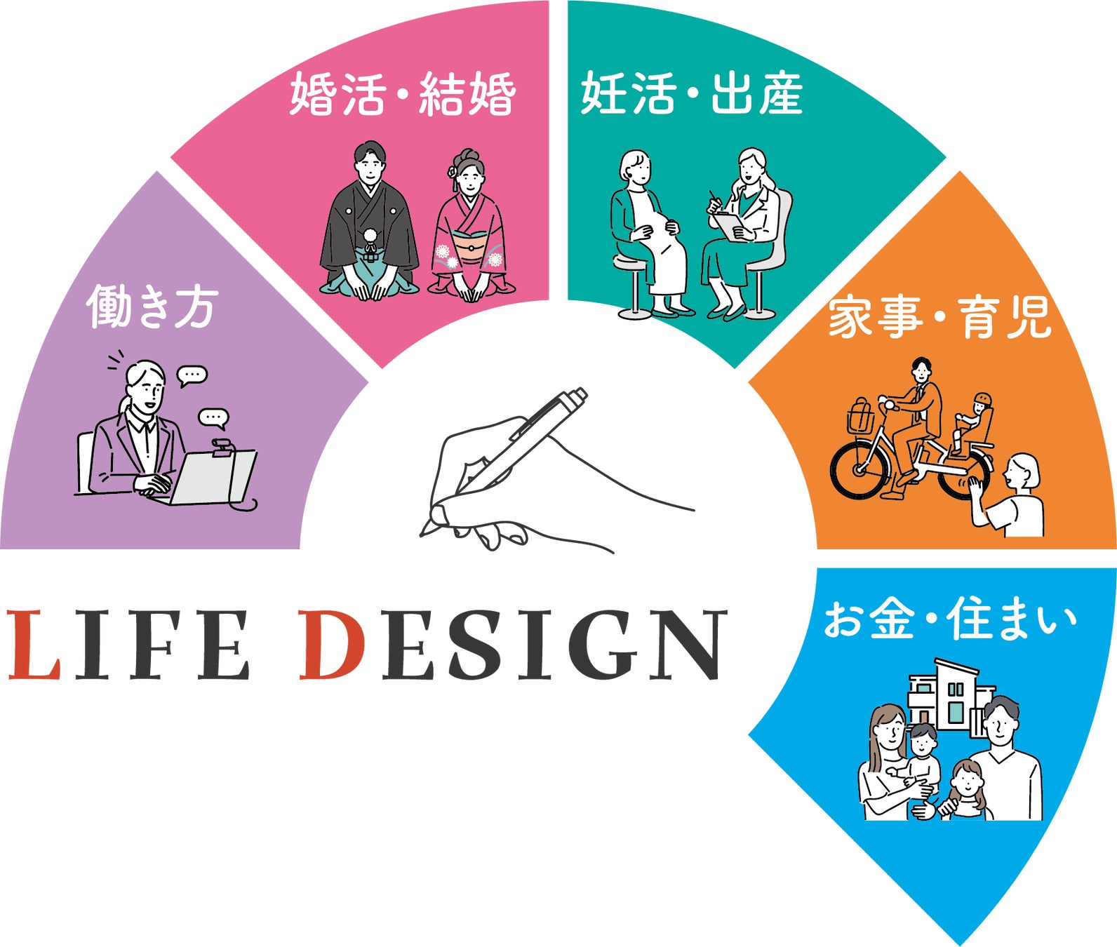 全国の個人(若者)・自治体・企業へ向けて、ライフデザインを組み立てる上で重要となる5つのカテゴリー(働き方 / 婚活・結婚 / 妊活・出産 / 家事・育児 / お金・住まい)についての情報提供や、各専門家の意見、実際のライフデザイン事例などをお伝えし、実際にライフデザインを組み立てていただくなかで、理想の人生を送るためのヒントを得ていただけます。