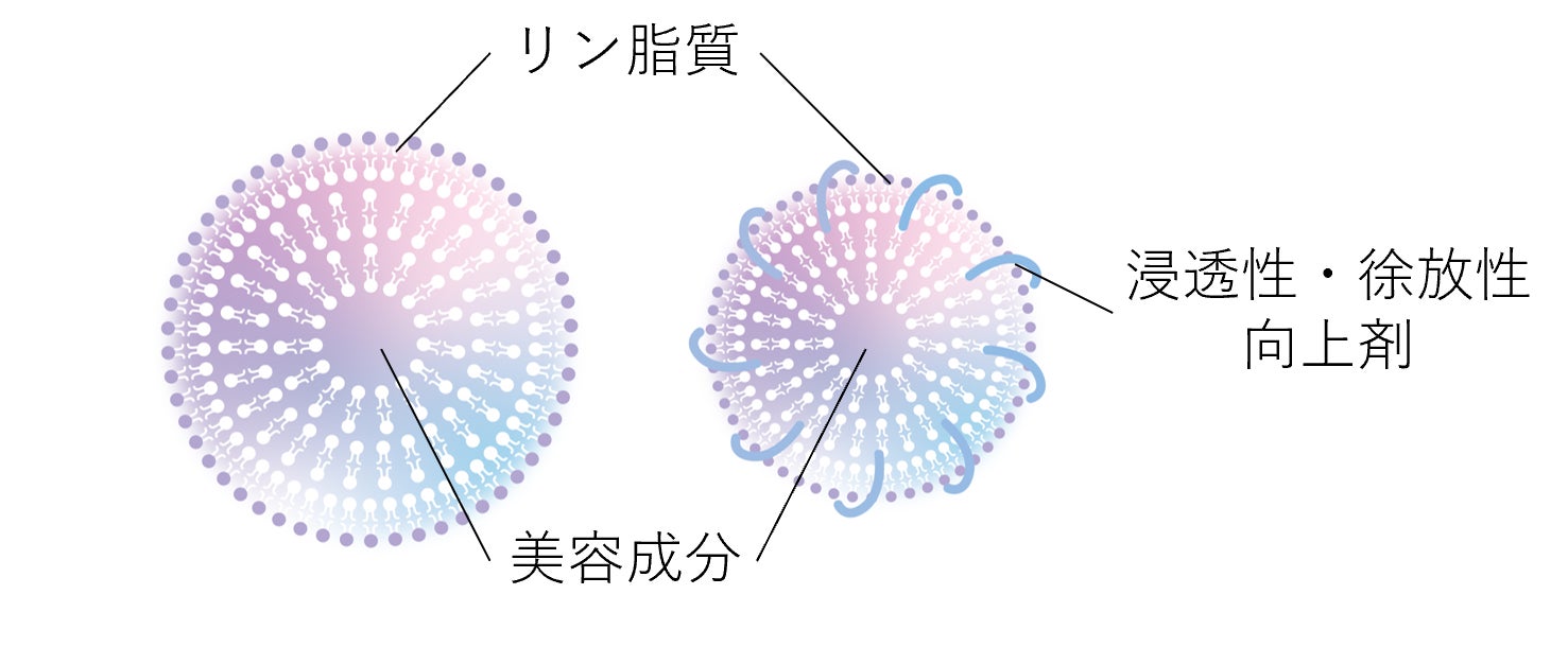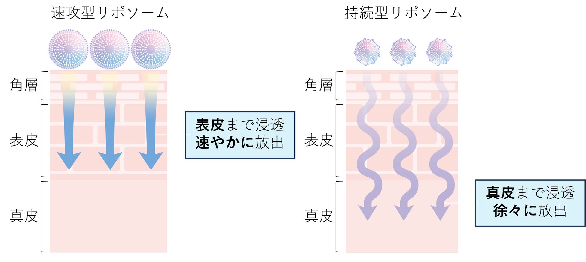 日本で初めて※、性質の異なる2種のリポソーム技術を活用した処方を開発しました。本デリバリーシステムにより、時間差で成分を届け続けることが期待されます。