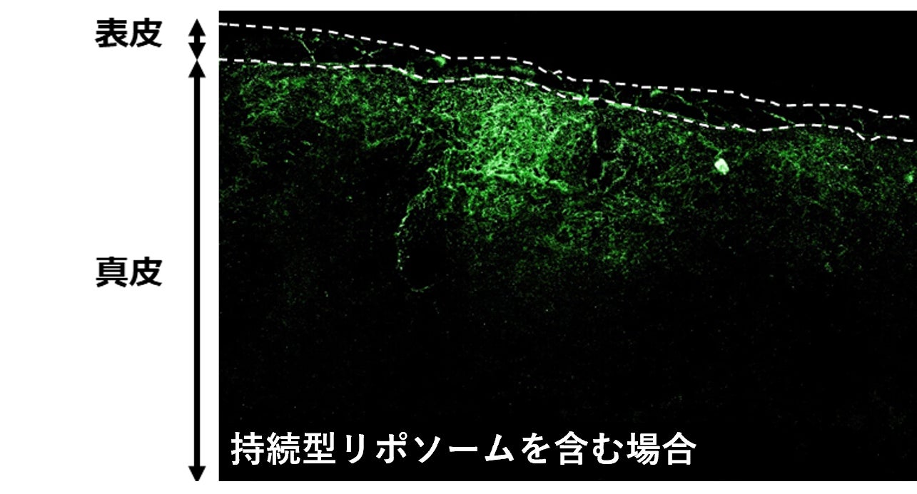 2種類のリポソームを組み合わせることで、有用成分を表皮まで速やかに届けるだけでなく、真皮までゆっくり深く届けることも両立できることが示唆されました。本技術は、スキンケアの効果を高めるための技術革新の一助となると考えられます。