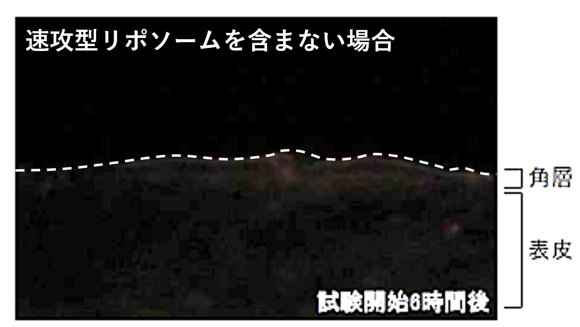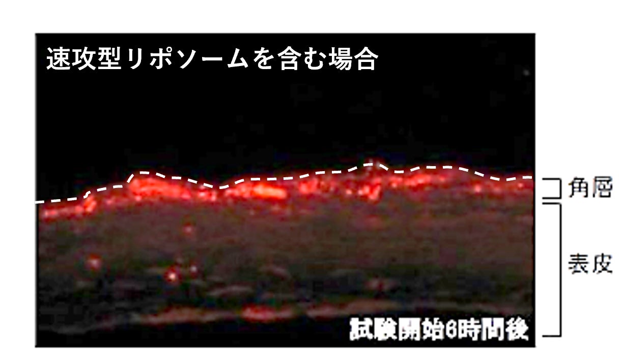 速攻型リポソームの浸透性:表皮まで成分が多く浸透します(図2)。