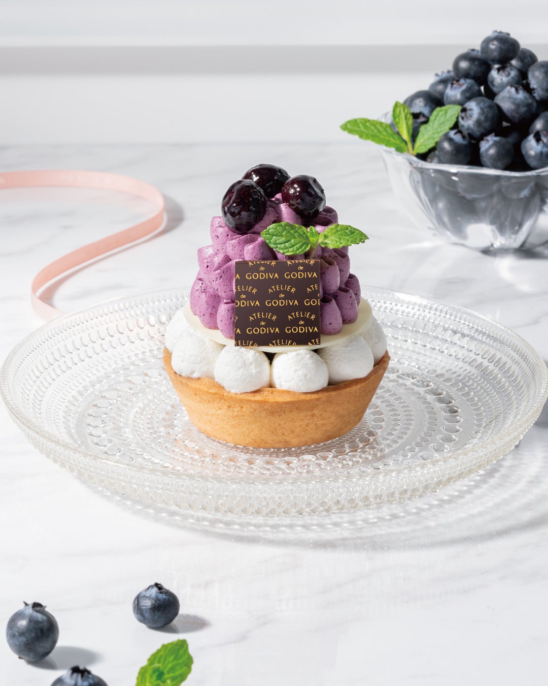 人気のモンゴディバシリーズから、ドレープ状に絞ったブルーベリーホワイトチョコレートガナッシュクリームが特徴的な、夏季限定モンゴディバ ブルーベリーが登場します。フロマージュブランクリームとともに、まろやかな口当たりのタルトに仕上げました。
