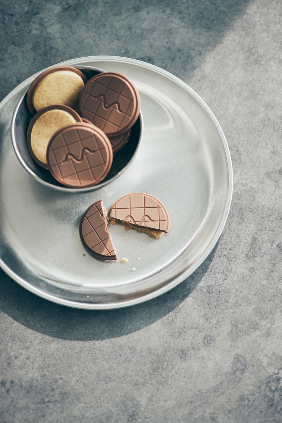 香ばしく軽快な食感のサブレにゲランドの塩をほんのりときかせることで より一層際立つミルクチョコレートの輪郭。
