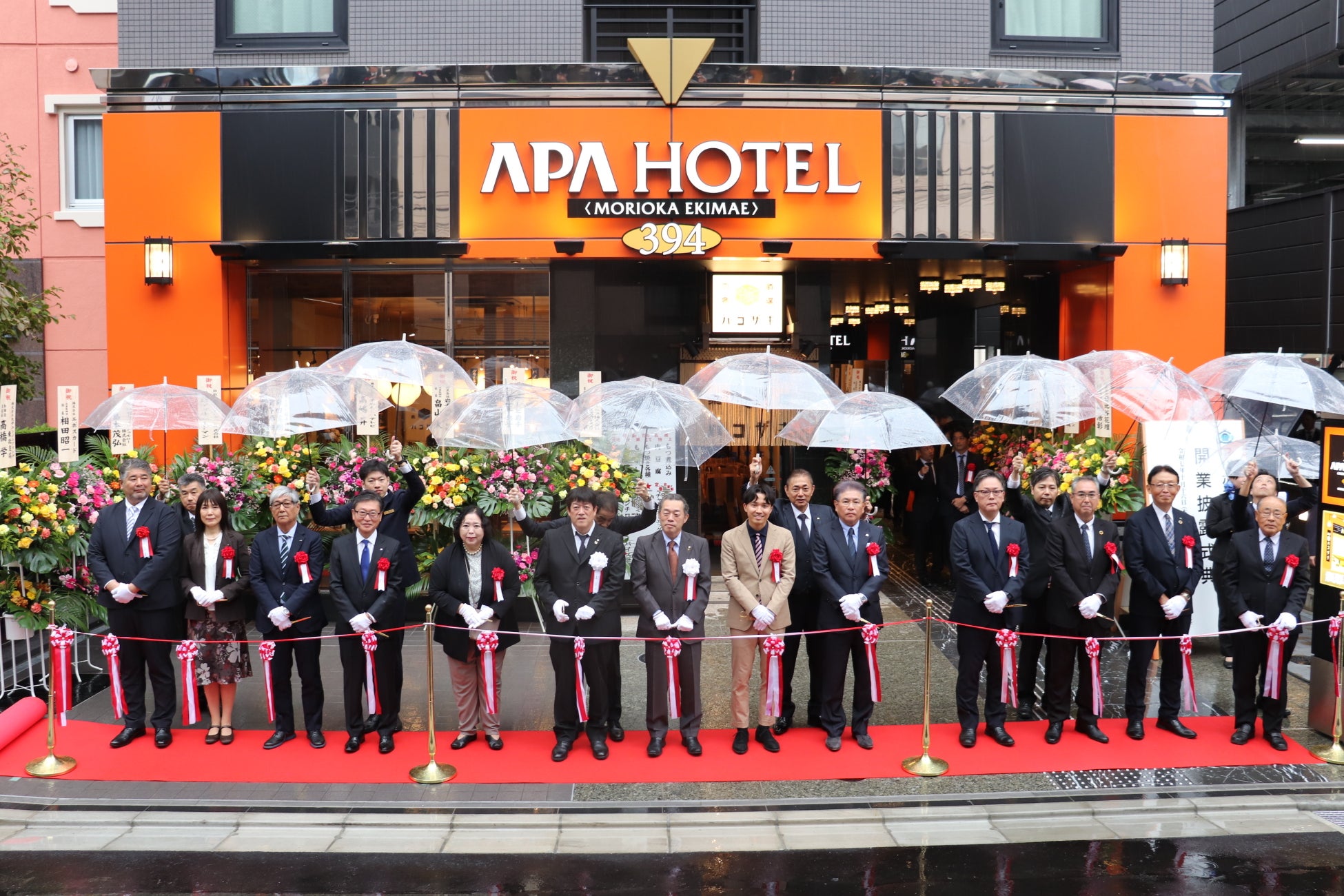 記者発表において、アパグループ社長 兼 最高経営責任者(CEO)の元谷一志は、「盛岡市初進出であり、岩手県内では新築ホテルとして初となるアパホテル〈盛岡駅前〉の開業を迎えることができ大変嬉しく思う。現在、当社は『選択と集中』戦略を進めており、盛岡は集中拡大エリアとしてすでに2棟目の用地も取得している。『アパホテルはラボである』を標榜し、トライ&エラーを繰り返しながら進化し続けており、当ホテルでは、火災、地震、津波などの緊急時の案内を客室のテレビ画面に5言語で表示するシステムの導入や浴槽またぎ用の手摺の設置など、お客様が安心・安全にご宿泊いただけるイノベーションを施している。盛岡駅周辺は多くのホテルがひしめく競争の激しいエリアであり、最後発での出店となるが、地域と共存共栄し、地元の皆様からも愛されるホテルを目指していきたい。」と述べた。