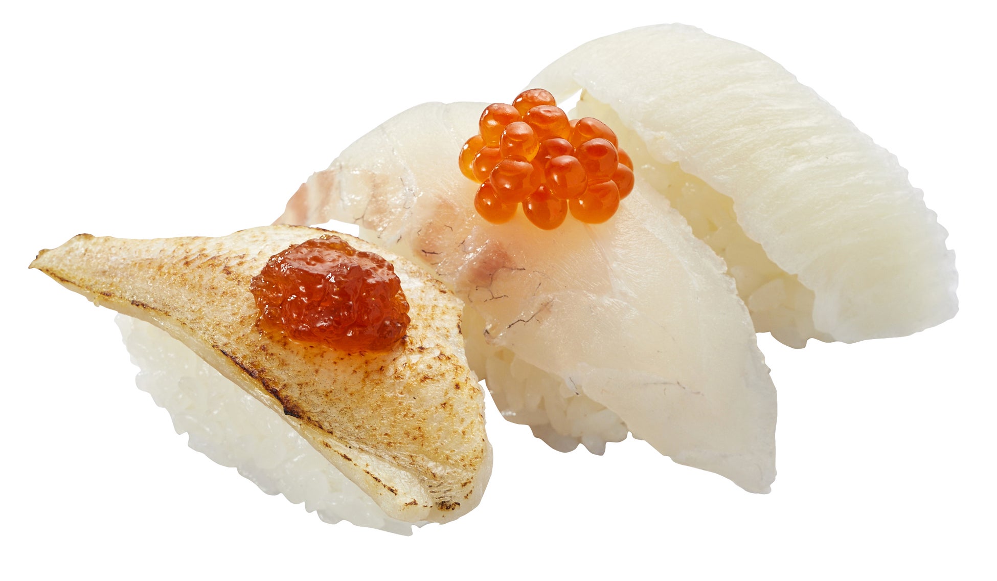 (のどぐろ炙り ポン酢ジュレのせ・活〆真鯛 いくらのせ・えんがわ)