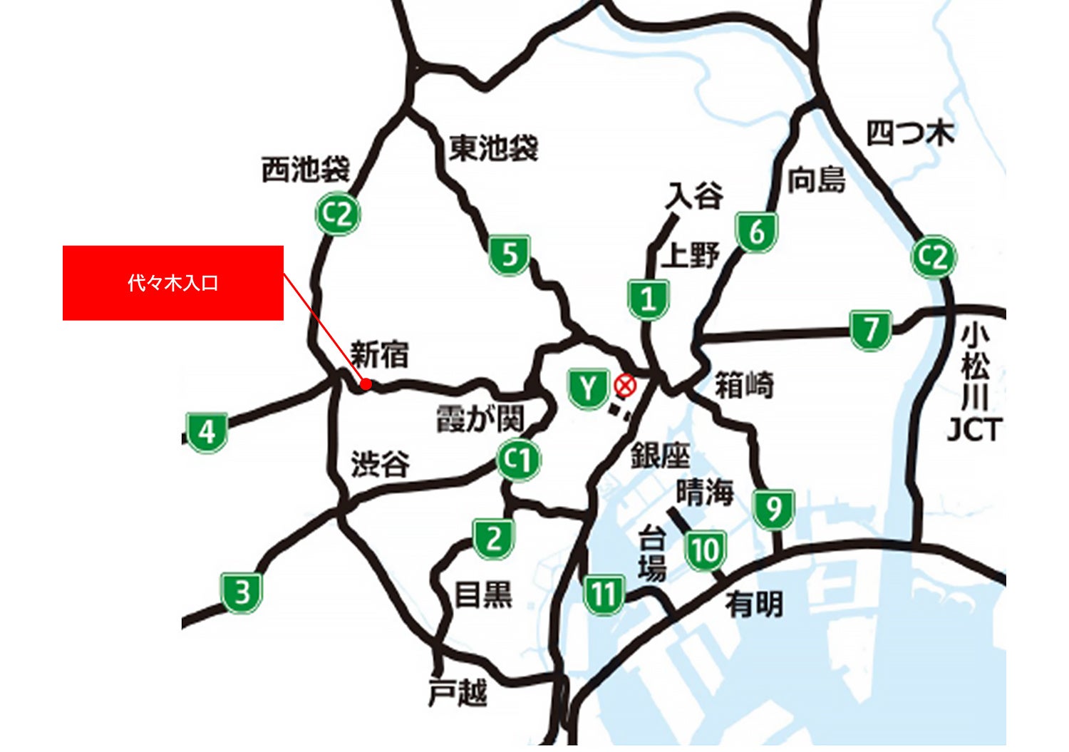 <実証実験場所:高速4号新宿線(上り)代々木入口の合流部付近>