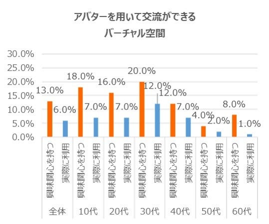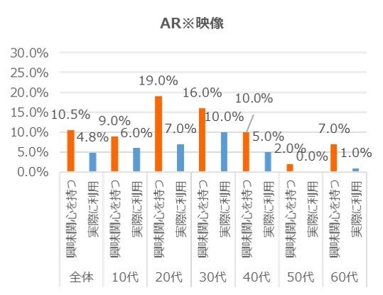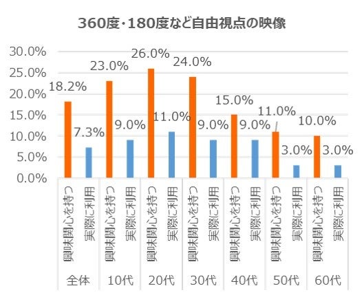 ■10代・20代・30代を中心に「自由視点の映像」「マルチアングル映像」「バーチャル空間」などへの関心の高まりがあり、実際に利用したことがある人も出始めている。