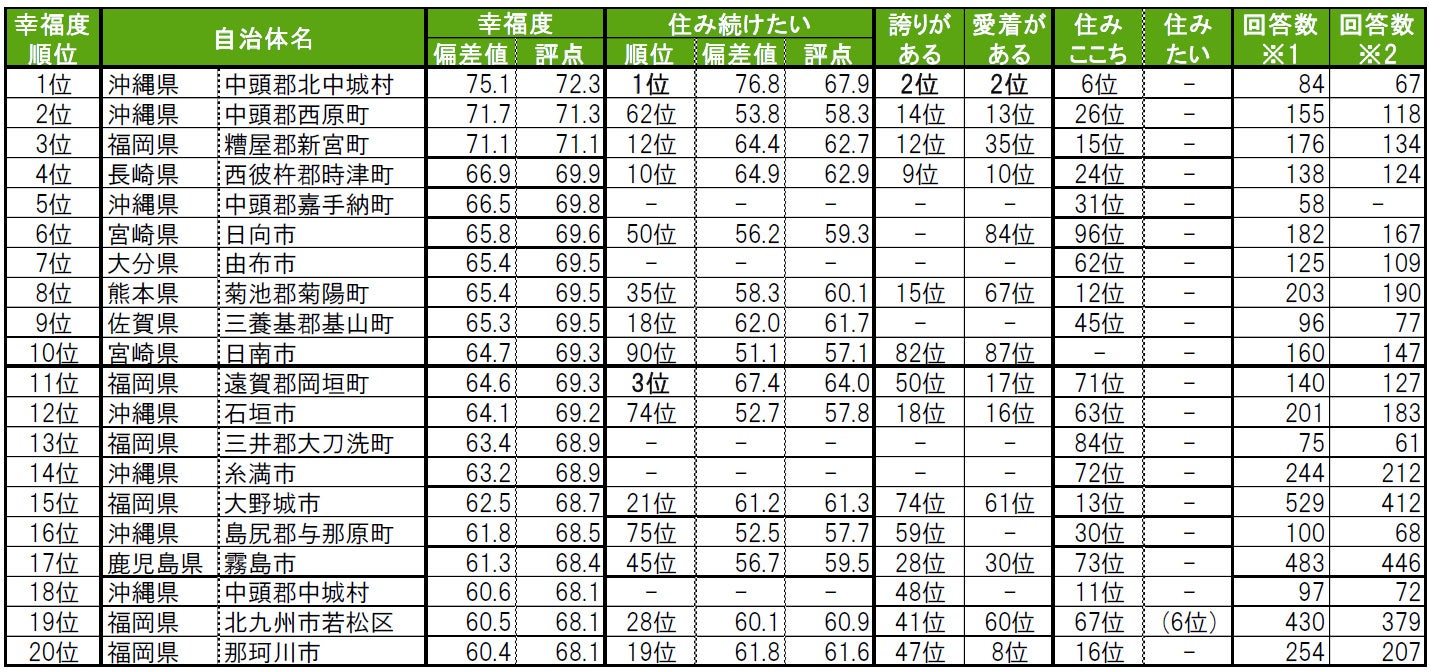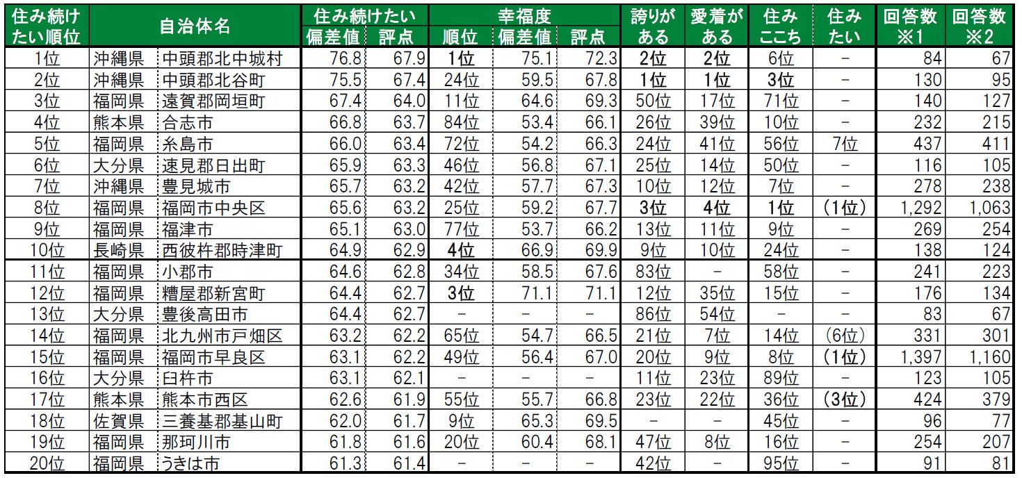 いい部屋ネット「街の幸福度 & 住み続けたい街ランキング2022<九州・沖縄版>」(街の住みここちランキング特別集計)発表