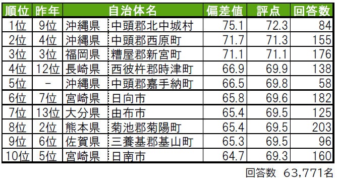 ○1位は初ランクインの沖縄県中頭郡北中城村