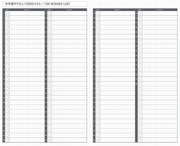 「今年度やりたい100のリスト」「お気に⼊りの⾔葉」