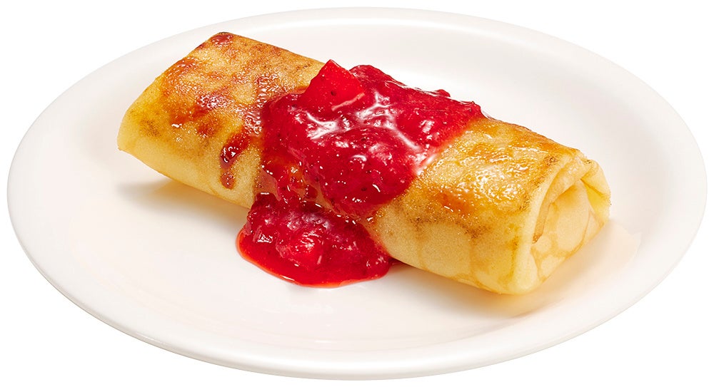 スシローの人気No.1スイーツ※1のカタラーナがクレープに!?クレープ生地で包んでパリっとブリュレ仕立てに!「カタラーナクレープブリュレ 苺ソース」が登場!
