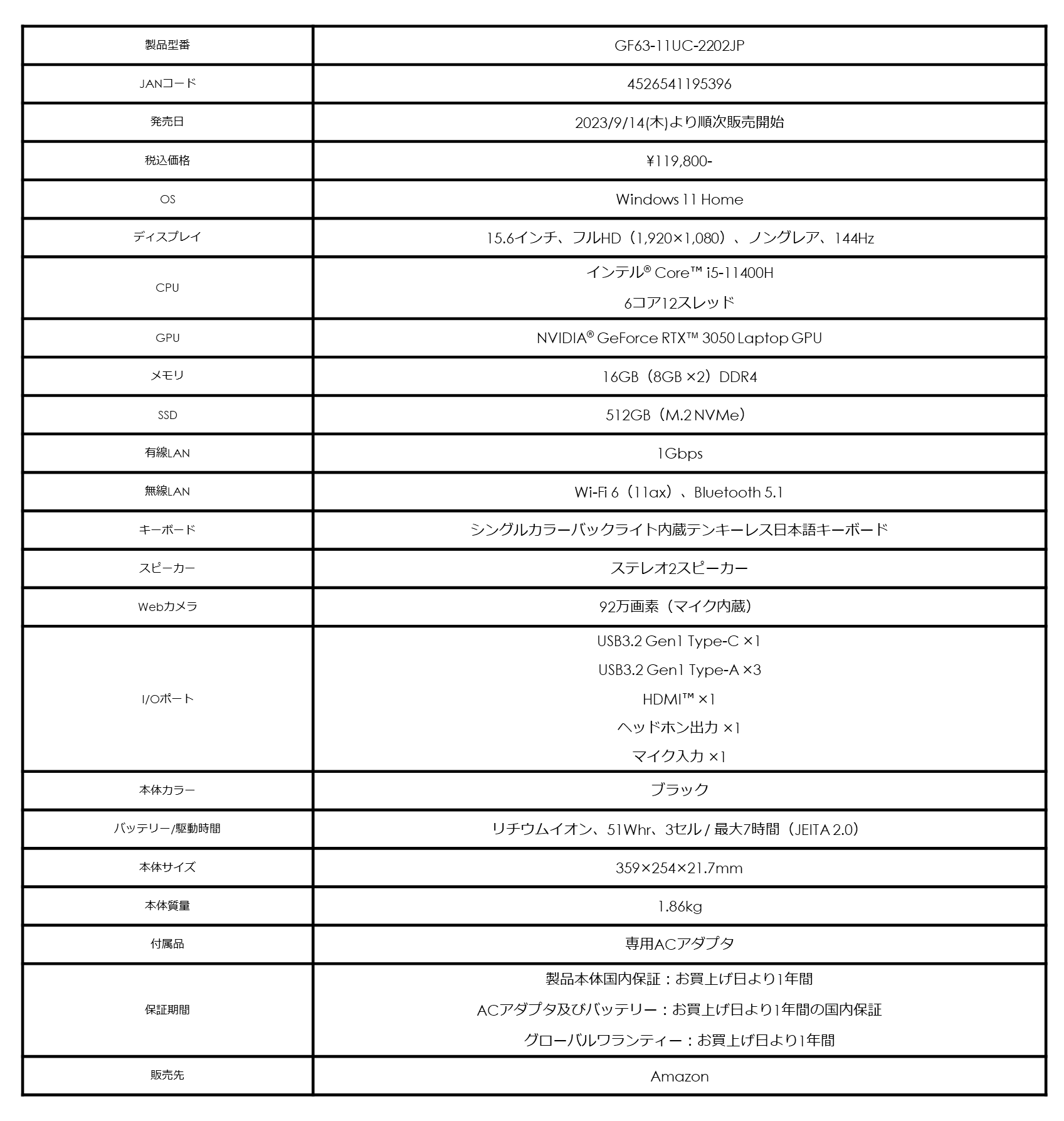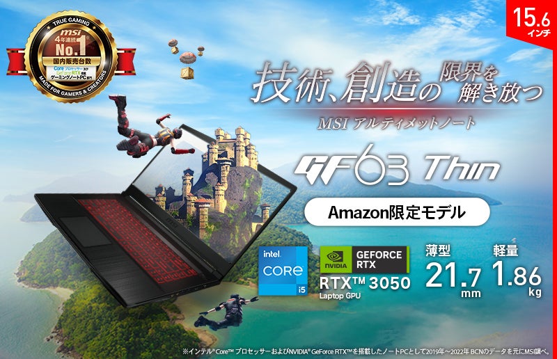 ビギナーゲーマーにも最適 薄型・軽量の高コストパフォーマンスゲーミングノートPC Amazon限定モデル「GF63-11UC-2202JP」発売