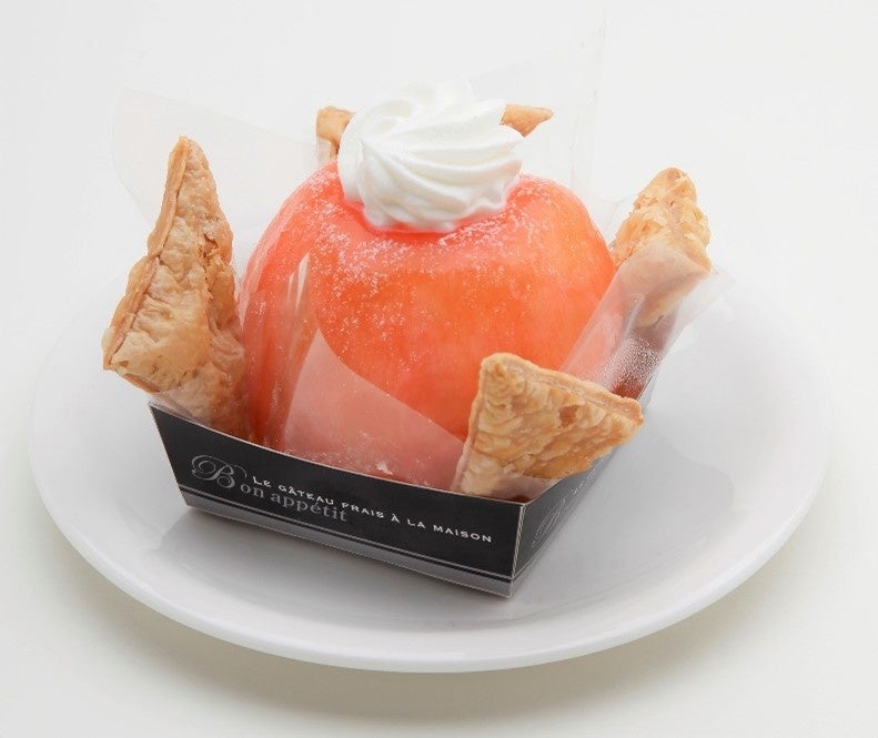 バラ色にコンポートした桃と、薄く軽やかに焼きあげたパイ生地の、みずみずしいハーモニーをお楽しみください。