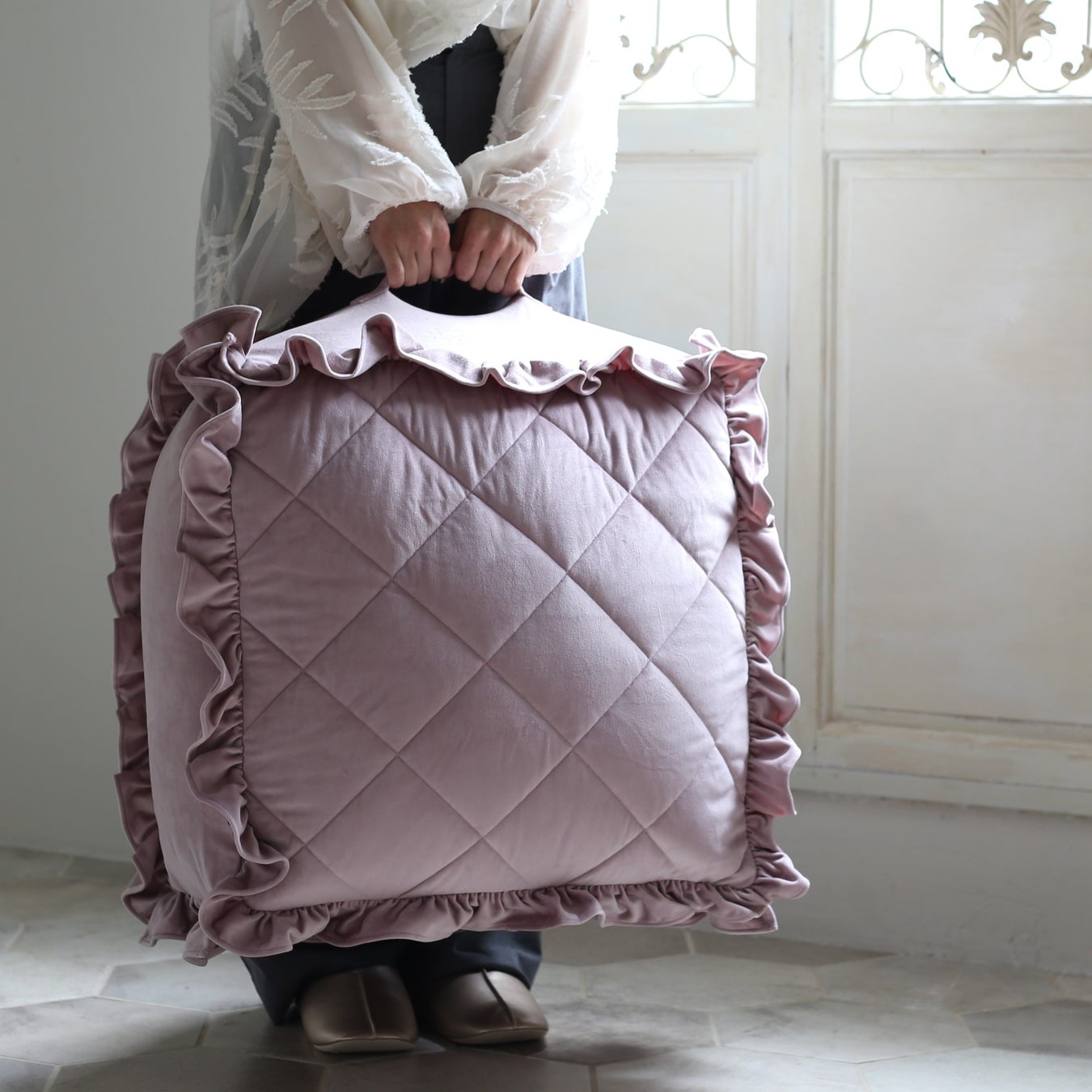 収納がなくても布団が簡単にしまえて、クッションとしても使える♪