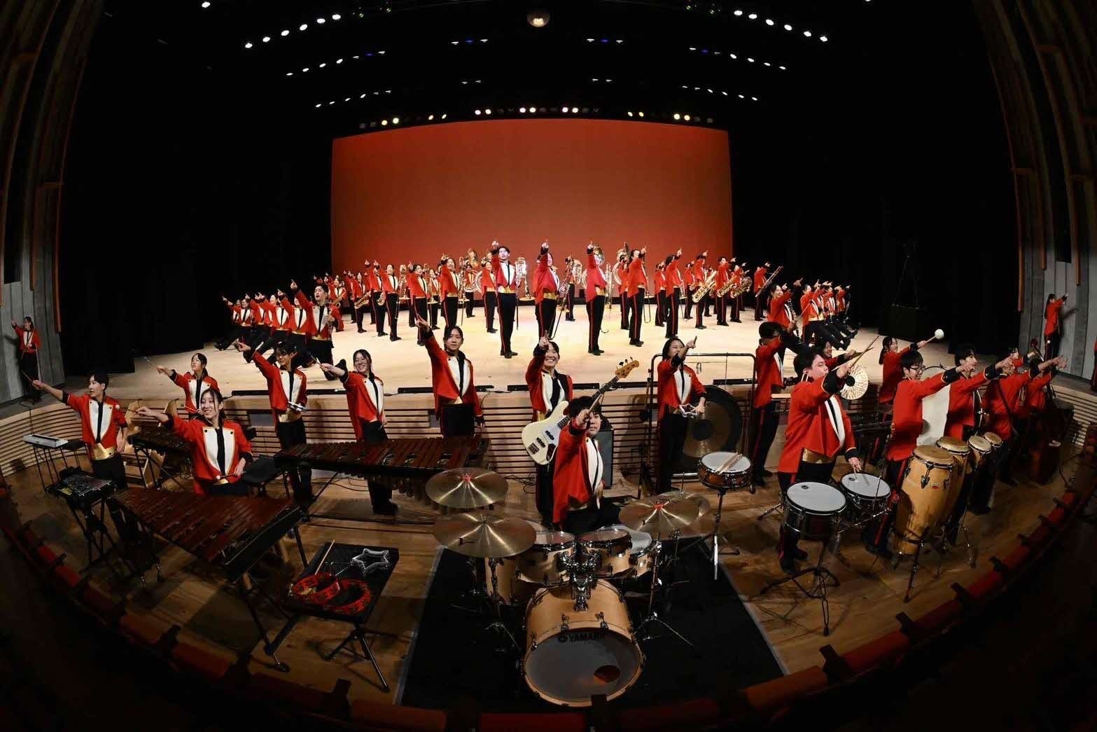 によるピアノ連弾、箕面自由学園高校吹奏楽部のマーチングショー