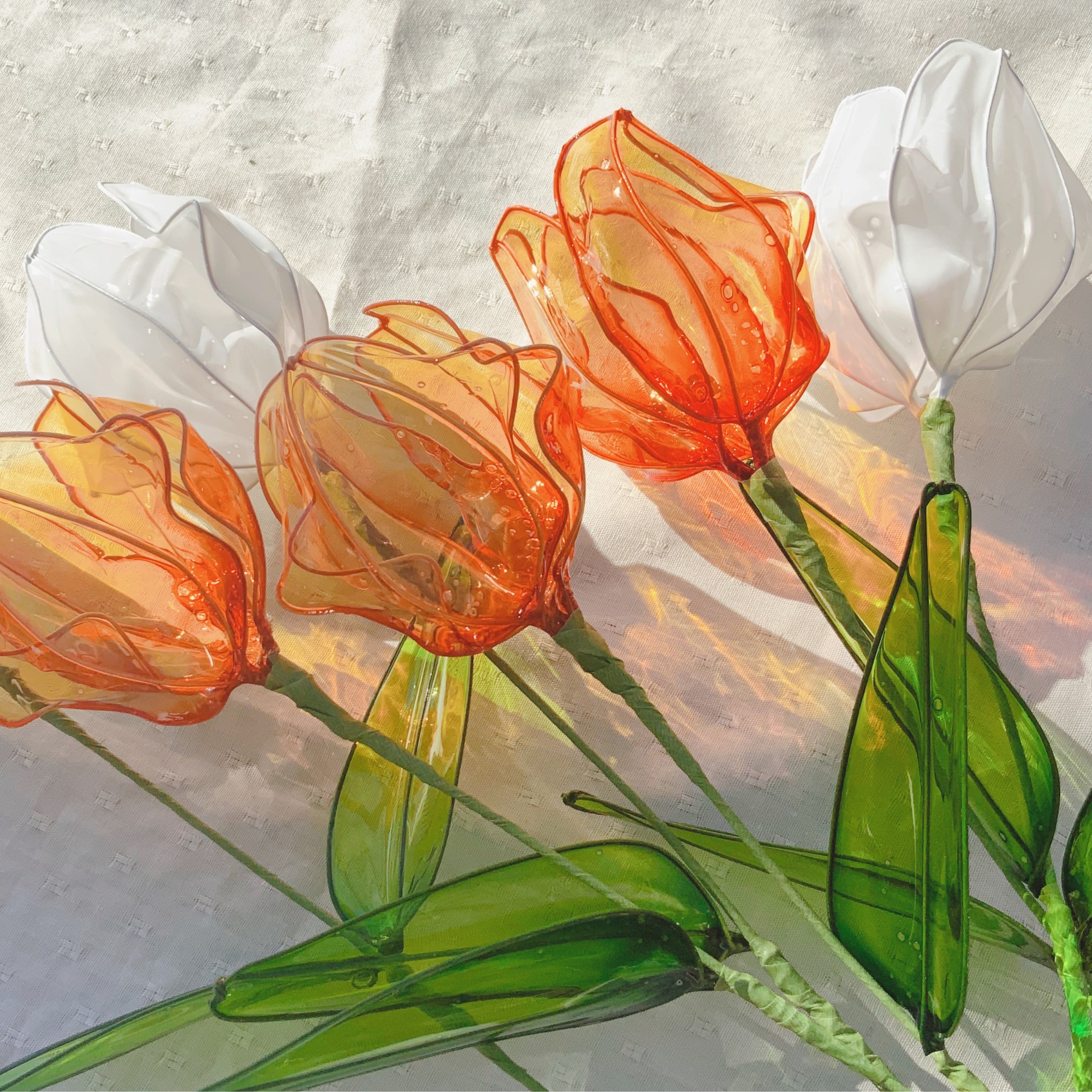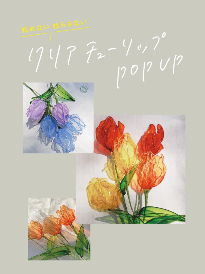 SNSで人気の合成樹脂とワイヤーで作成したクリアチューリップを実際にお手にとってご覧いただけます。