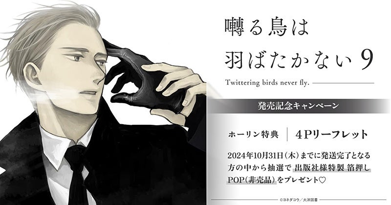 ホーリンラブブックスでは、ヨネダコウ先生最新コミックス『囀る鳥は羽ばたかない(9)』 発売を記念して豪華キャンペーンを実施いたします!