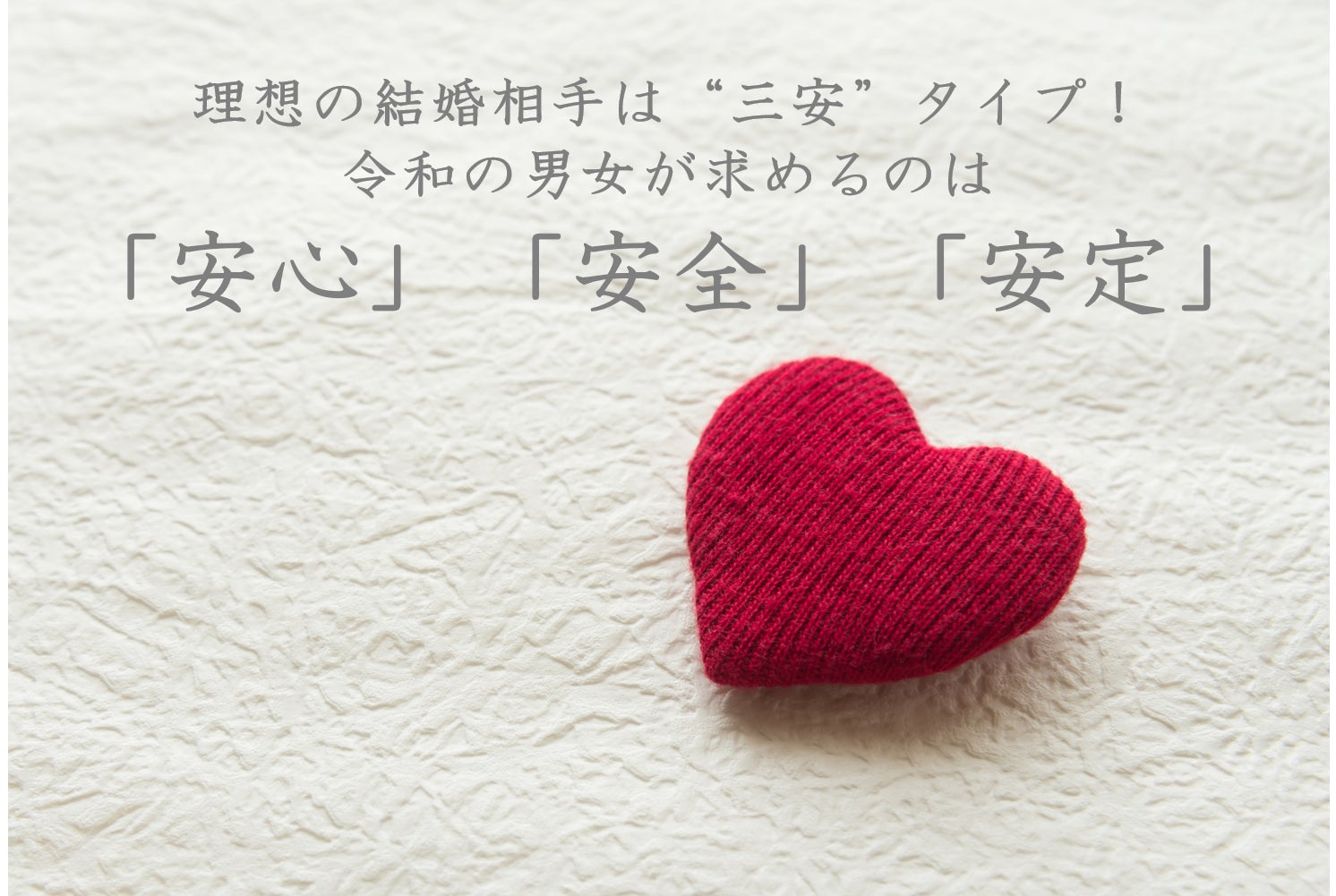 令和の男女が求める理想の結婚相手は「安心」「安全」「安定」の“三安”タイプ!