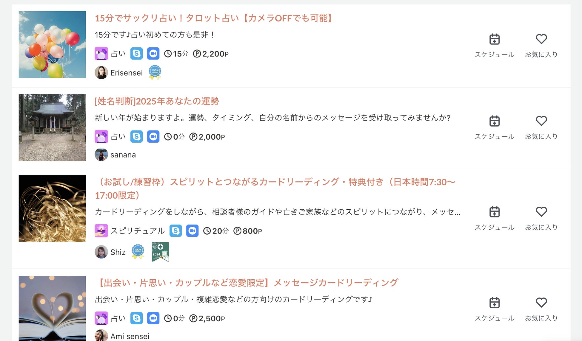 占い・スピリチュアルセッションを提供する先生方