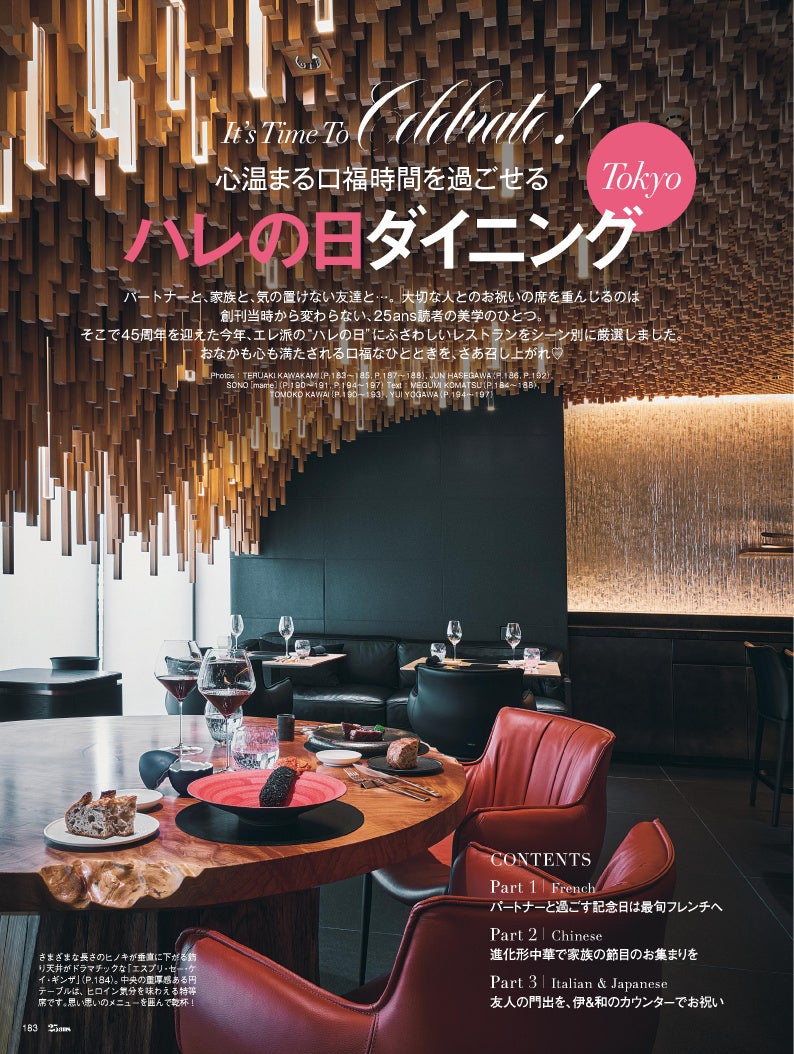 パートナーと、家族と、気の置けない友達と…。大切な人とのお祝いの席を重んじるのは創刊当時から変わらない、25ans読者の美学のひとつ。そこで45周年を迎えた今年、エレ派の“ハレの日”にふさわしいレストランをシーン別に厳選しました。