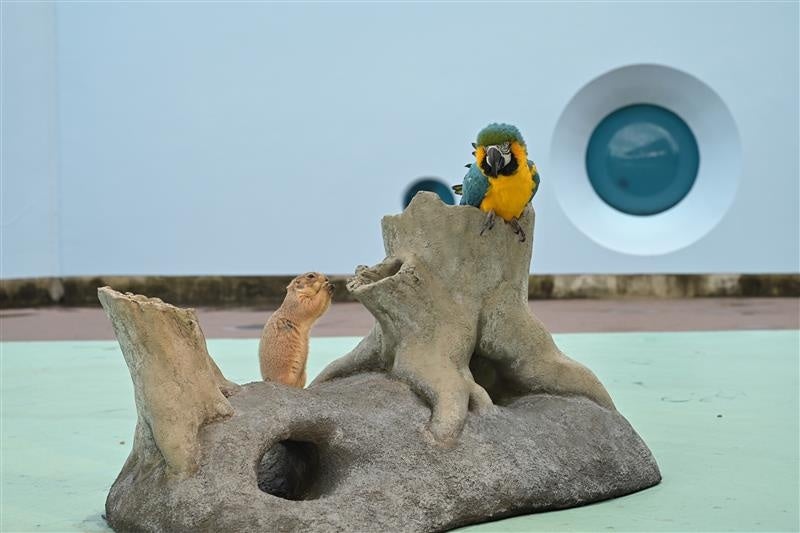 水族館「アクアミュージアム」4階ライブスタジアムで開催している「Animal Life Live!」では、パフォーマンス時に生きものたちのリアルな動きや躍動を体感いただくことで、自然環境や生きものたちの未来を考えていただくきっかけを提供しております。