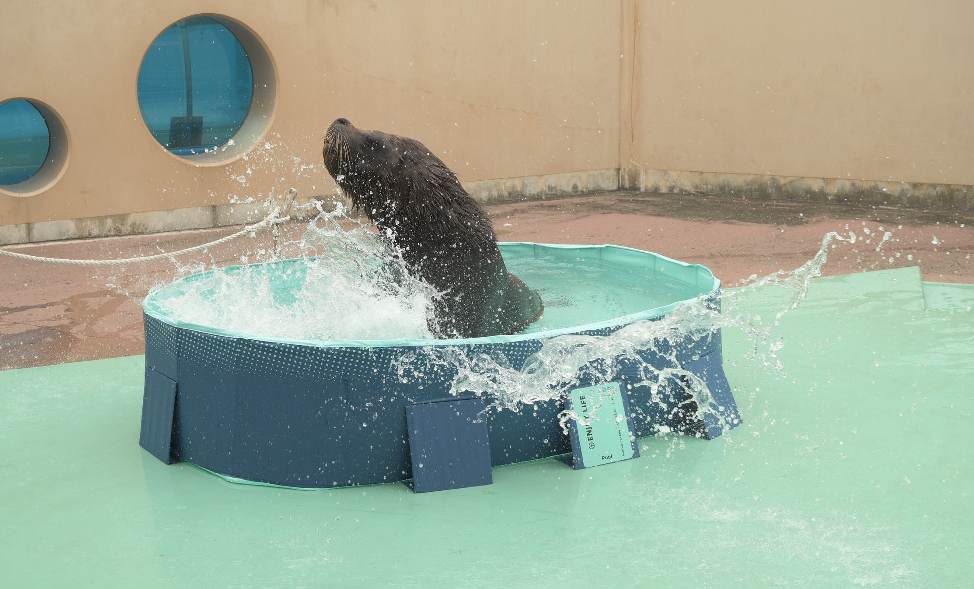 さらに夏期限定で、お客さまが“涼”を感じるパフォーマンスも開催いたします。特設プールに入ったオタリアが大きな前肢(まえあし)を動かして、大量の水しぶきをプレゼントいたします。パフォーマンス終了後は、パフォーマンスに登場した生きものたちと記念撮影もお楽しみいただけます。