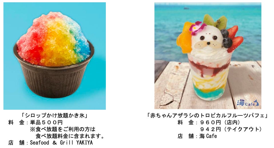 島内のレストランや軽飲食店舗では、暑い夏に欠かせない“涼”スイーツや夏らしいフードやドリンクをご用意しております。「かき氷」や「アイス」など食べて涼しいメニューはもちろん、夏限定のメニューや、心も体も癒されるかわいいフードなどシーパラならではの夏のメニューをお楽しみいただけます。