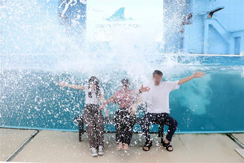暑い夏は開放的な空間で、イルカたちによる涼しい“ずぶ濡れの夏”をお楽しみください。
