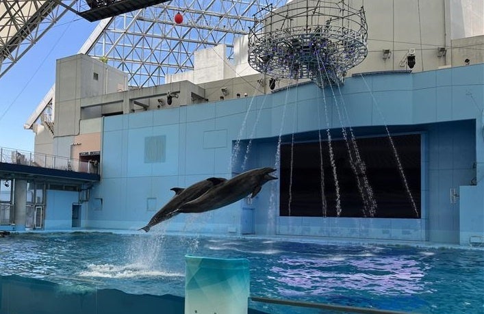 パフォーマンス中では、スタジアム上部に設置している噴水から降り注ぐ水の演出とイルカたちとのコラボレーションをはじめ、お客さま参加型によるセイウチの生態クイズや、バンドウイルカやカマイルカによるダイナミックなジャンプ、シロイルカによる優雅な水中パフォーマンスなどをご覧いただけます。