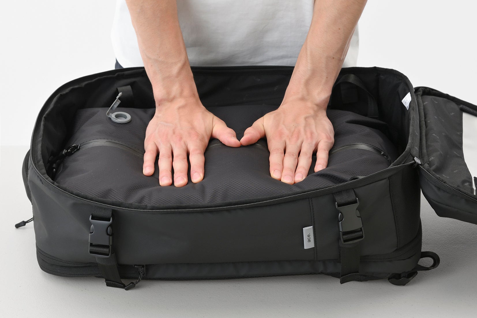 通勤・旅行・非常時に対応する圧縮・拡張バックパック。