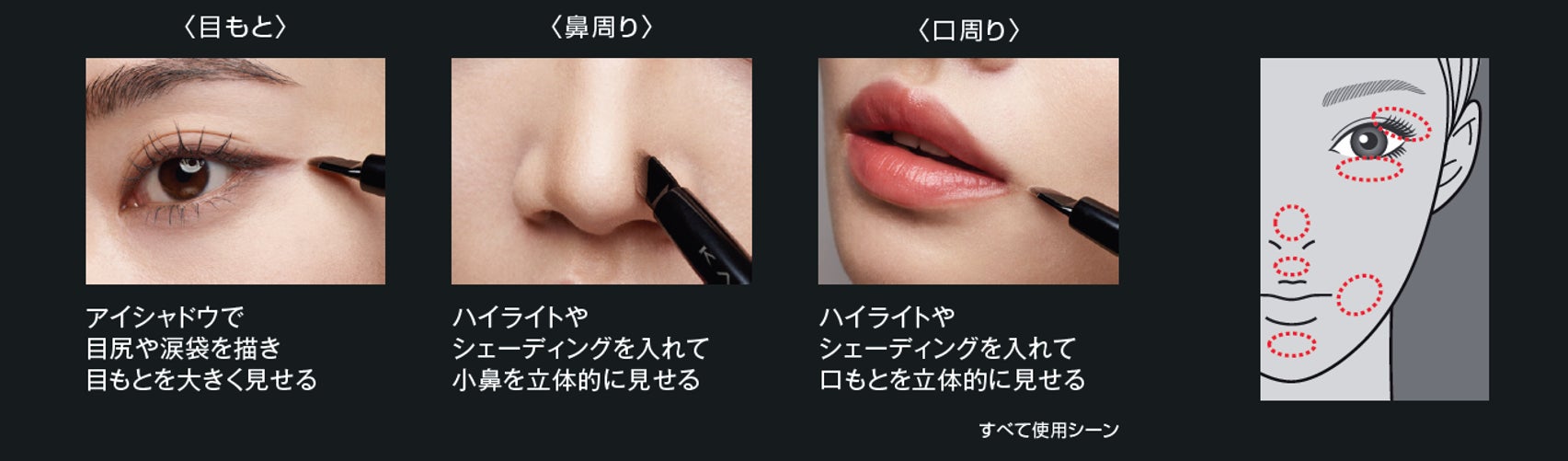今回発売する“骨格陰影ブラシ”は、光と影を「超ピンポイント」に「正確」に操る、なぎなた形状のマルチアイライナーブラシです。メイクはパーツごとに選んだツールを使って仕上げることで、いつものメイクをアップデートすることができます。KATEのツールコレクションは、肌当たりがよく、顔の凹凸にフィットするよう設計されているので、特別なテクニックがなくても簡単に骨格が際立つ立体的な印象のメイクに仕上がります。ぜひお試しください。
