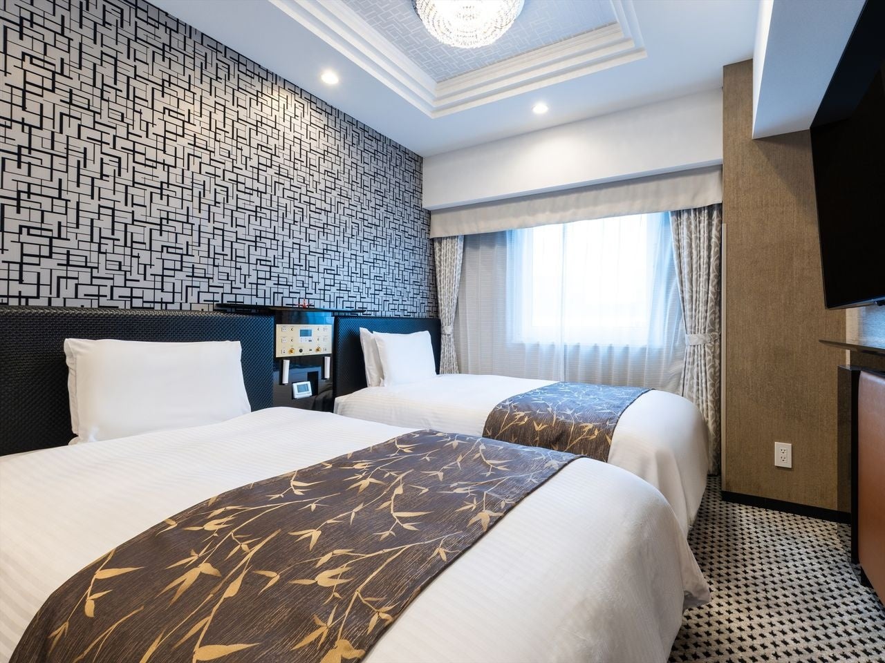 客室設備は高品質・高機能・環境対応型を理念とする「新都市型ホテル」の最新仕様としており、客室は、標準的なシングル、ダブル、ツインに加え、隣り合う客室を繋げて最大4名様で利用できる「コネクトルーム」やソファを配し2名様でもゆったりとおくつろぎいただける「コージールーム」など用途に合わせた複数の客室タイプを用意している。アパホテルは 『 Even Better! APA HOTEL - さらによりよく - 』 を掲げて宿泊者の利便性・居住性を追求し続けており、当ホテルにおいても、新たな客室設備を導入するなど、今まで以上に快適なホテルへとイノベーションを行った。また、増加する訪日外国人需要の受け皿となるべく、アパホテルでは訪日外国人志向の客室づくりに注力しており、ホテルの館内案内などをテレビ画面に集約表示した5言語対応の『アパデジタルインフォメーション(ADI)』や世界のプラグに対応するユニバーサルコンセント、全525種類のピクトグラムを使用した館内サイン・案内を採用している。