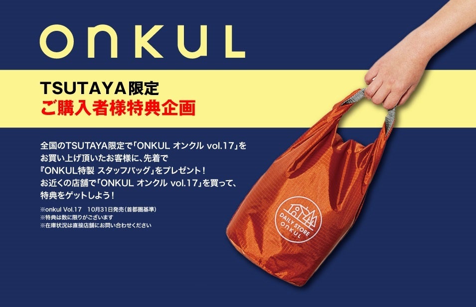 ONKUL vol.17「ONKUL特製スタッフバッグ」実施店舗:https://www.sun-a.com/sp/onkul-17-t/