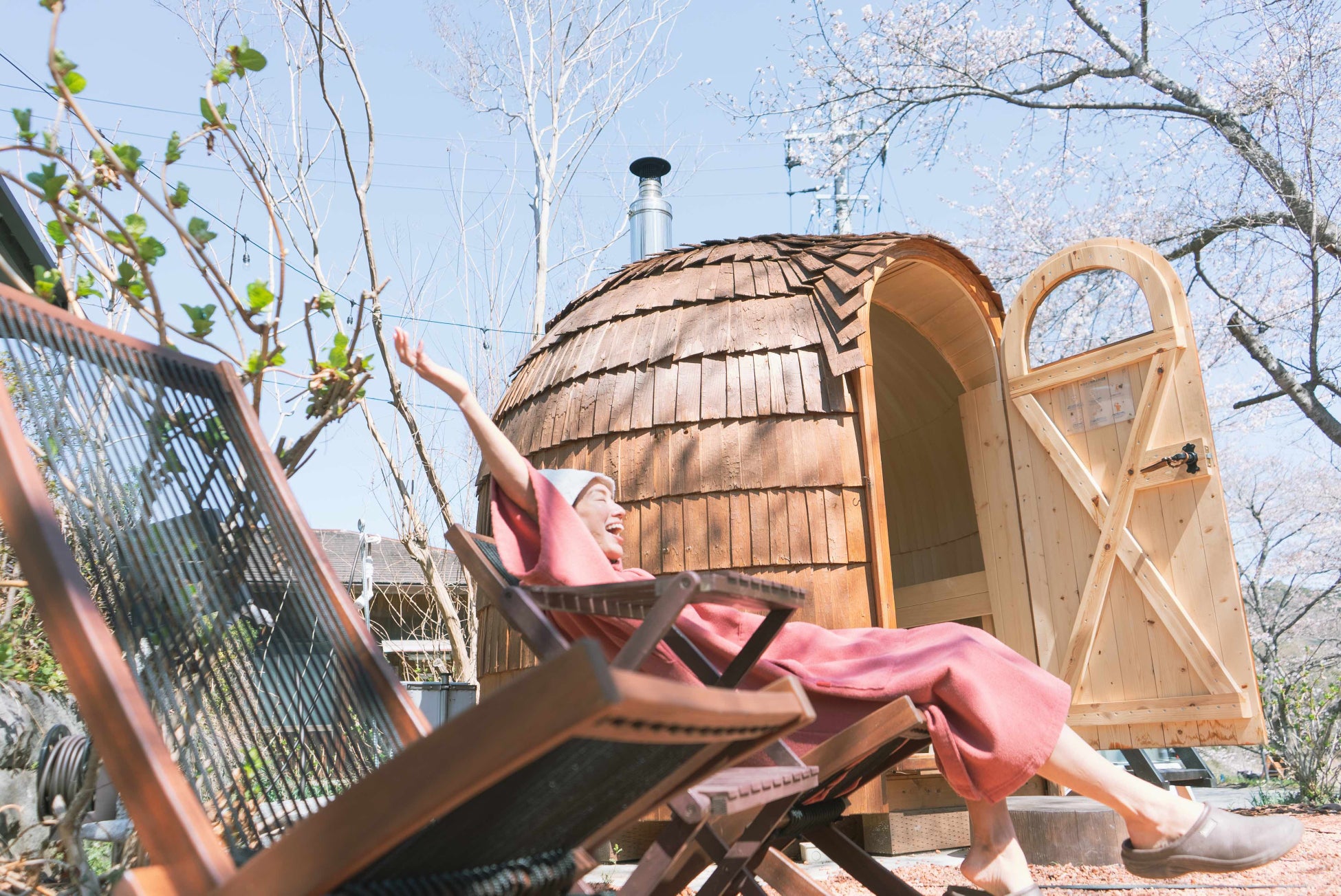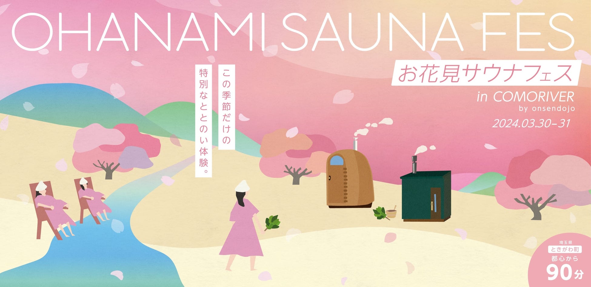桜の木の下で3種のアウトドアサウナが楽しめるサウナイベント。ときたまひみつきちCOMORIVERにて「お花見サウナフェス」を開催
