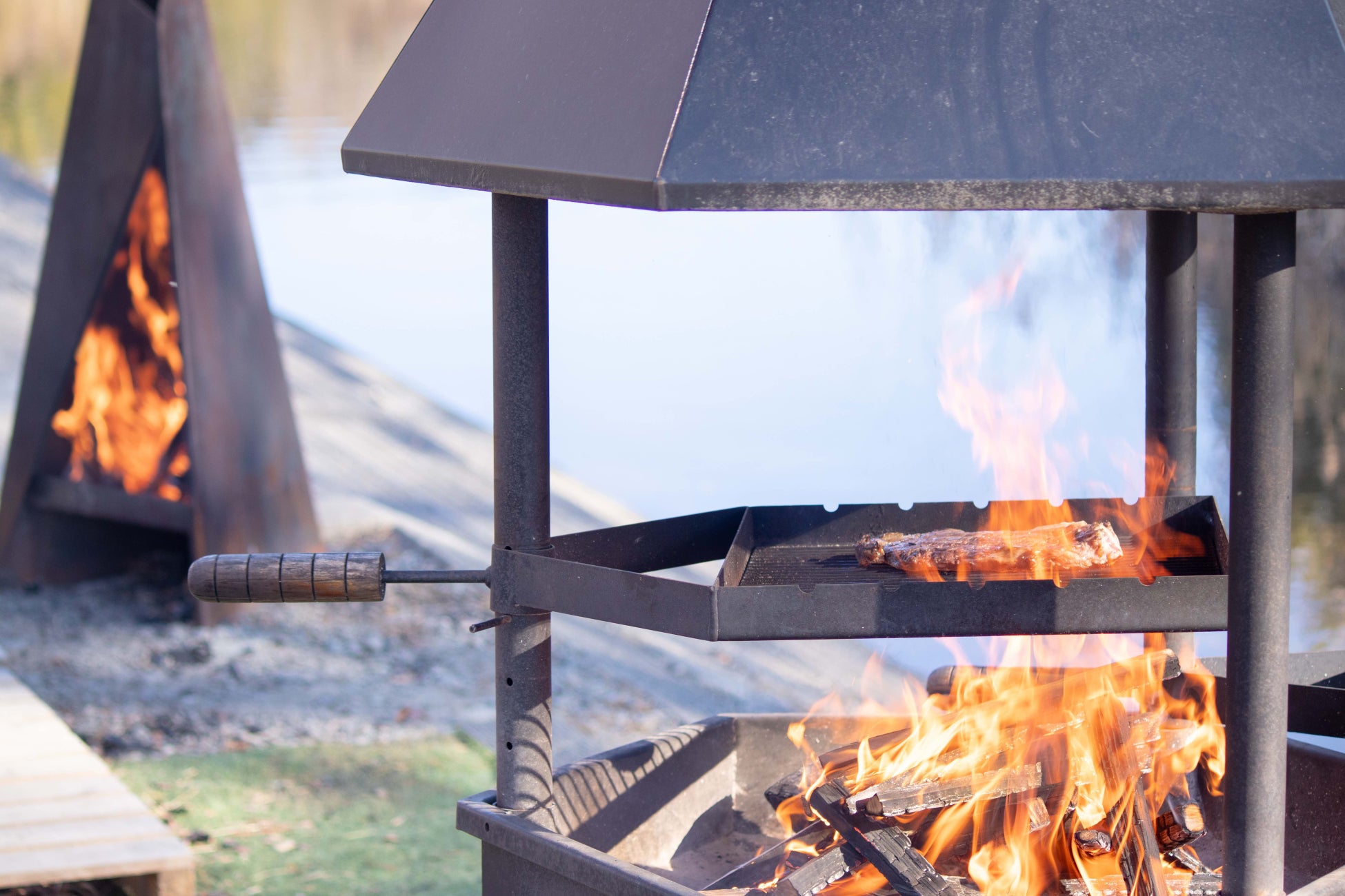・桜の薪を使用した薪火BBQ料理