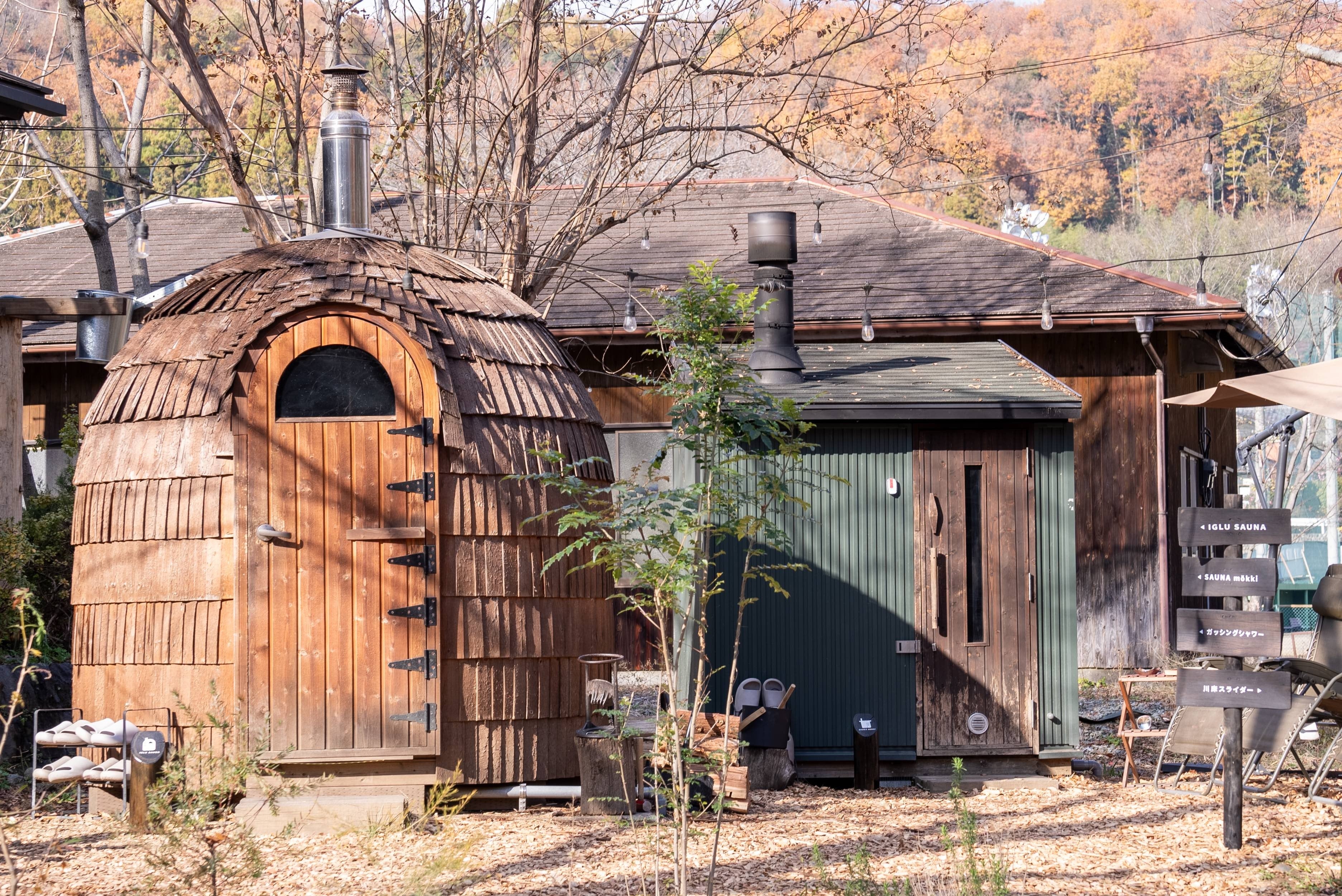 ・桜の薪を使用した4種の薪焚きサウナ(イグルーサウナ、サウナモッキ、ASEMA、テントタイプサウナ)