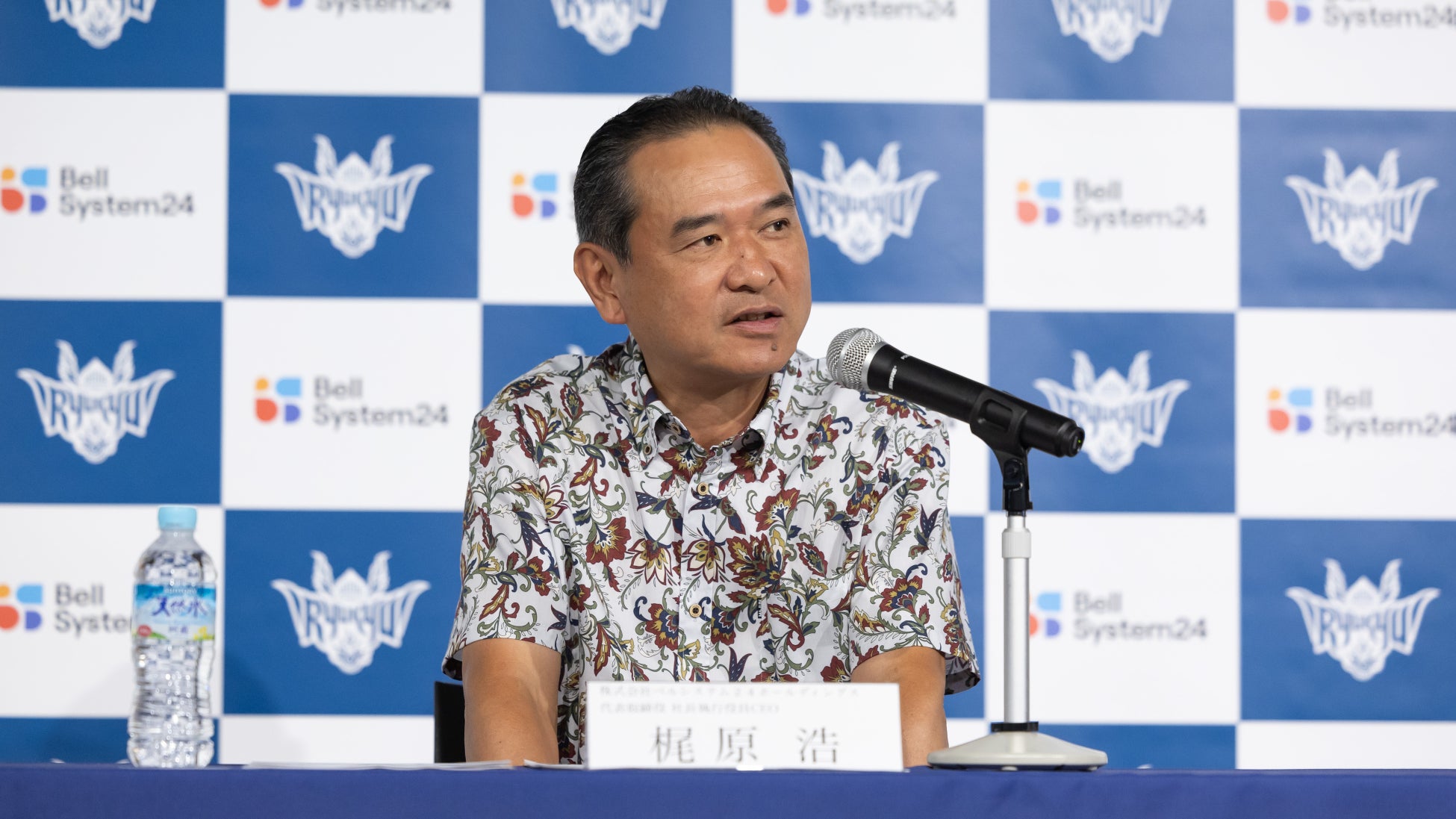 本日8月28日(水)に契約締結に関する記者会見が沖縄アリーナにて行われ、同会見に代表取締役社長白木享と#14 岸本隆一選手が出席しました。