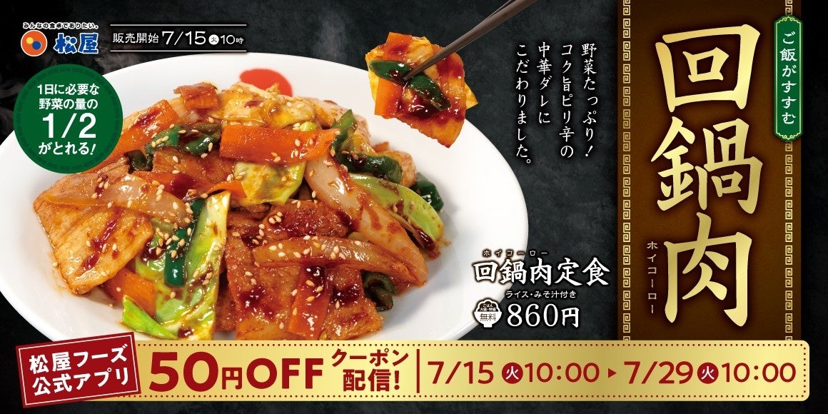このたび松屋フーズ(本社:東京都武蔵野市、代表取締役社長:瓦葺一利)では、牛めし・カレー・定食・その他丼の「松屋」におきまして、2025年7月15日(火)10時より「回鍋肉」を販売いたします。