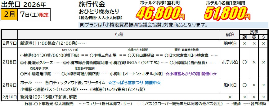 【新潟発着団体ツアー】祝!小樽 日本遺産登録!プレミアムガイドが案内する"冬の北海道"団体ツアー発売!