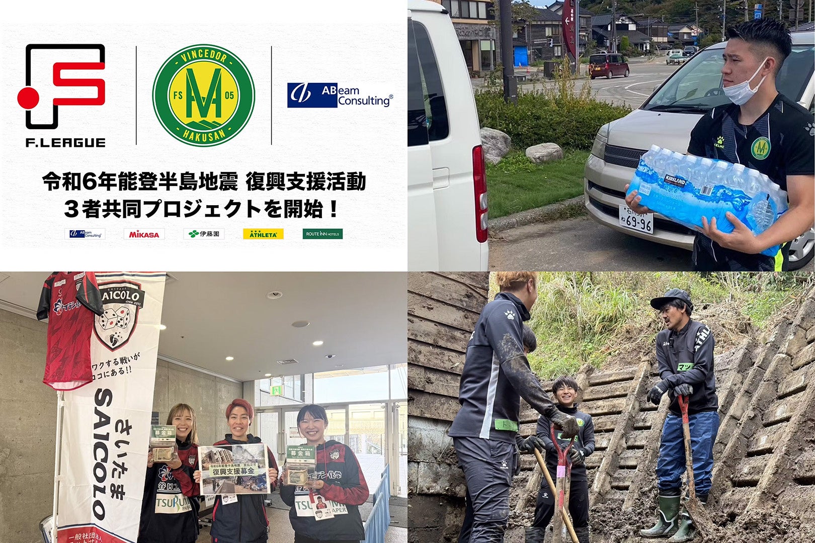 2024年 7月 令和6年能登半島地震復興支援活動をヴィンセドール白山、アビームコンサルティング、Fリーグの3社共同プロジェクトとして開始。