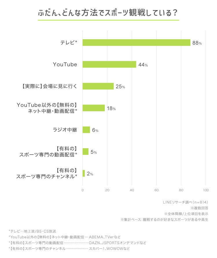 「LINEリサーチ」では、全国の中高生を対象に、観戦するのが好きなスポーツやその観戦方法、また、憧れのスポーツについて調査しましたので、結果をお知らせします。