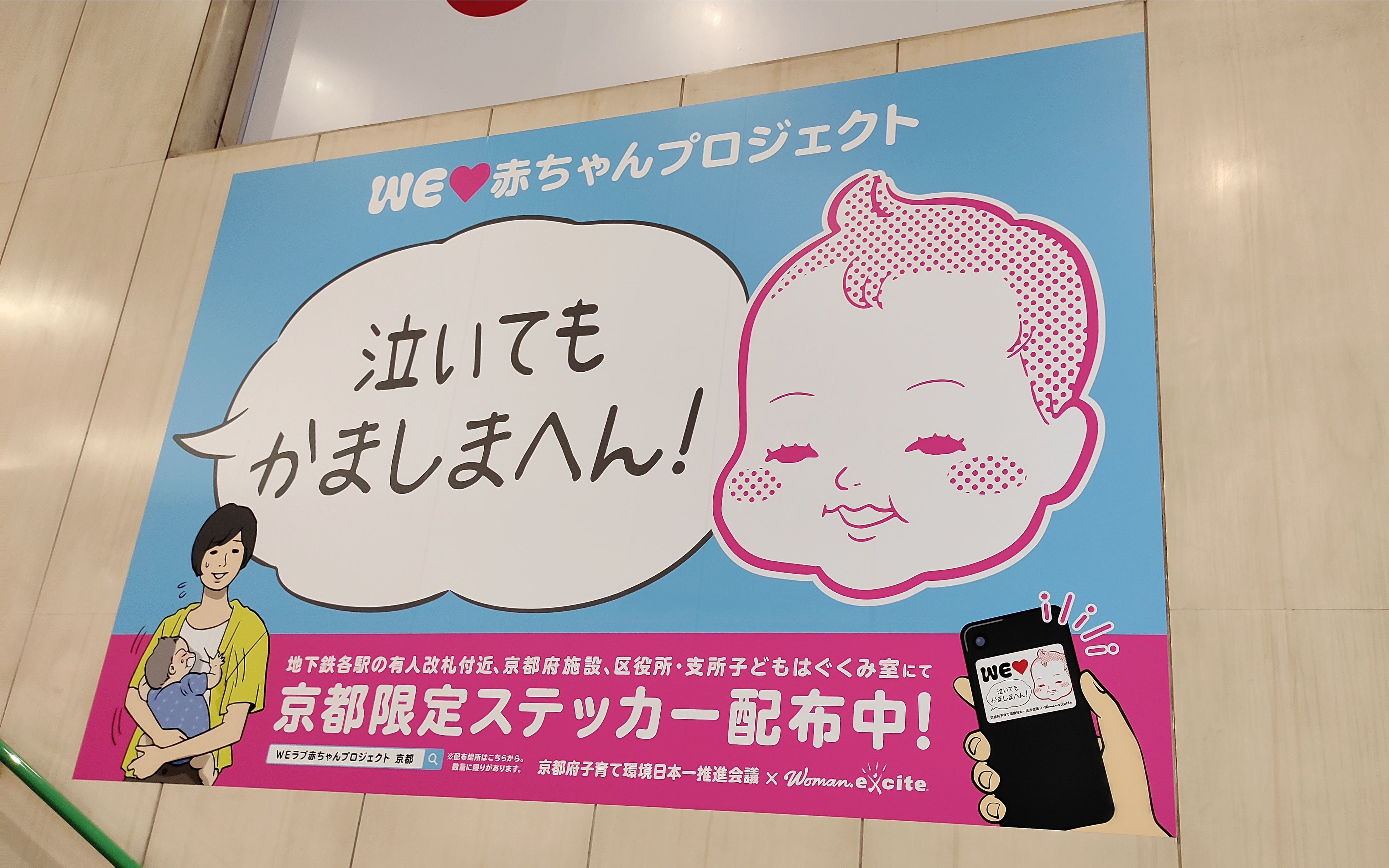エキサイト株式会社(所在地:東京都港区、代表取締役社長:西條晋一、以下「エキサイト」)運営のママ向けウェブメディア「ウーマンエキサイト」が立ち上げた「WEラブ赤ちゃんプロジェクト」は、2月15日より京都府内の137台の路線バス車体や京都市営地下鉄の駅構内28箇所、また地下鉄・市バス車内では2,160枚に及ぶ、京都限定版「泣いてもかましまへん!」イメージポスター等の掲示を開始。