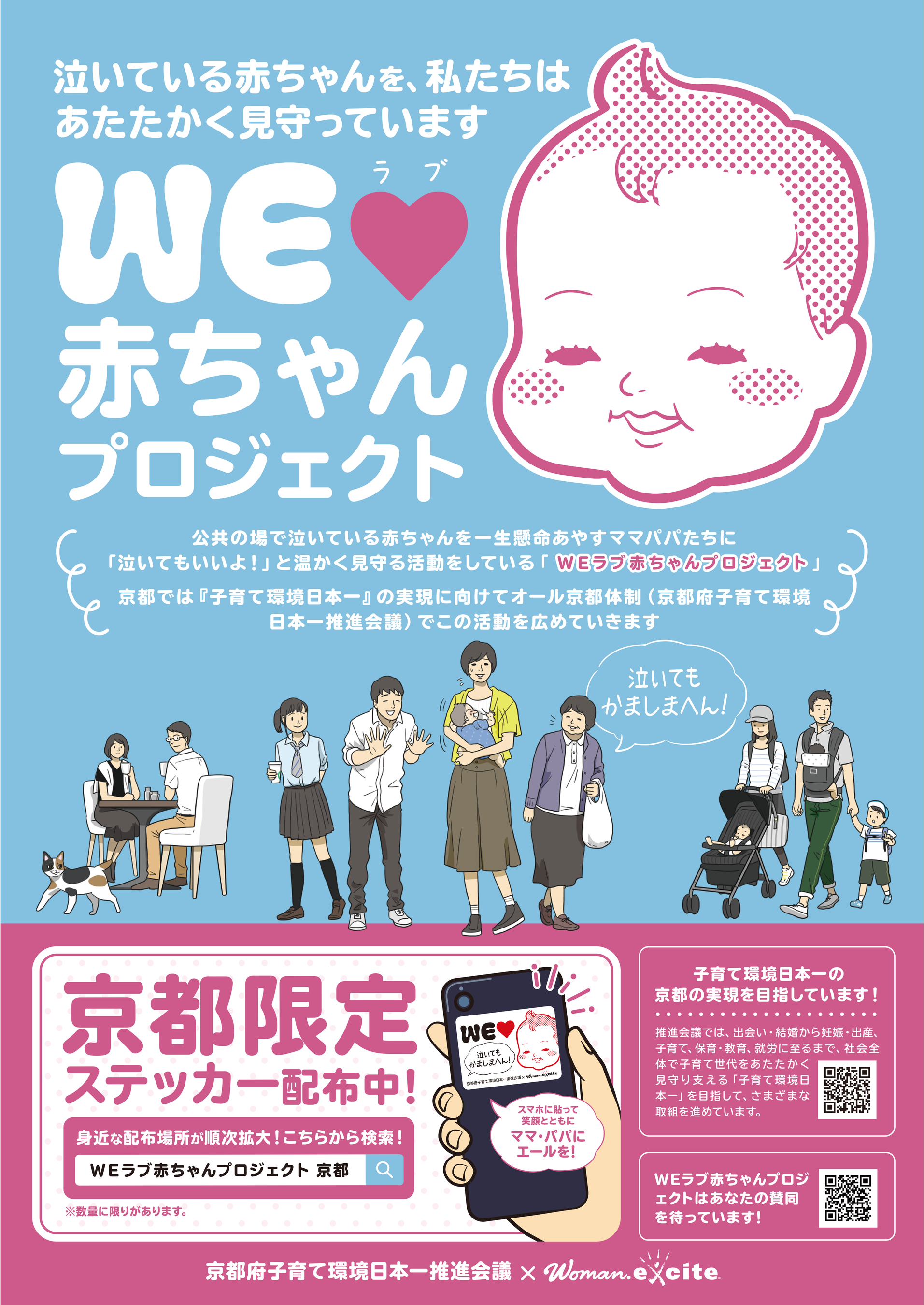 「京都府子育て環境日本一推進会議×WEラブ赤ちゃんプロジェクト」本格化!府内137台のバスや駅構内28箇所等で「泣いてもかましまへん!」登場