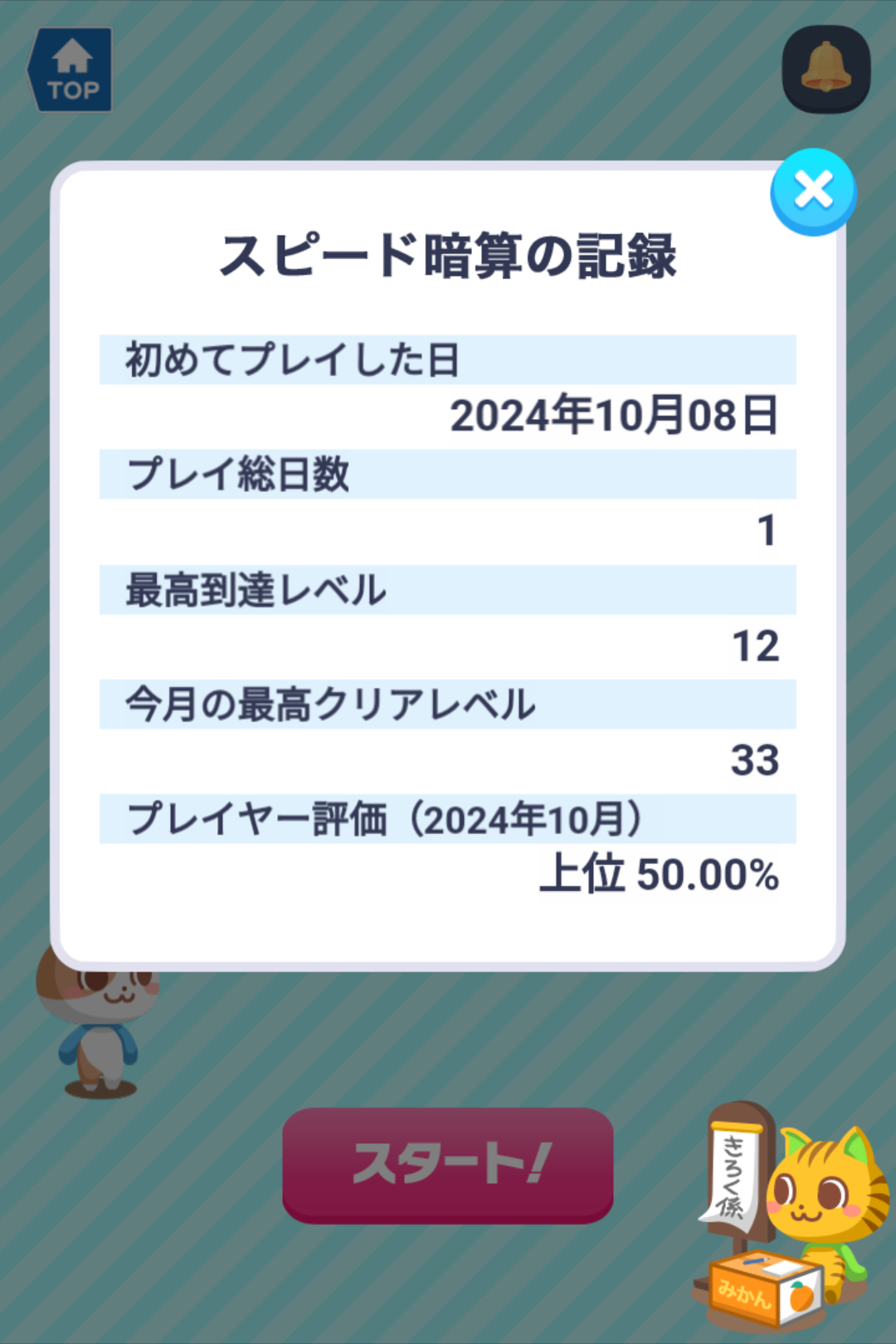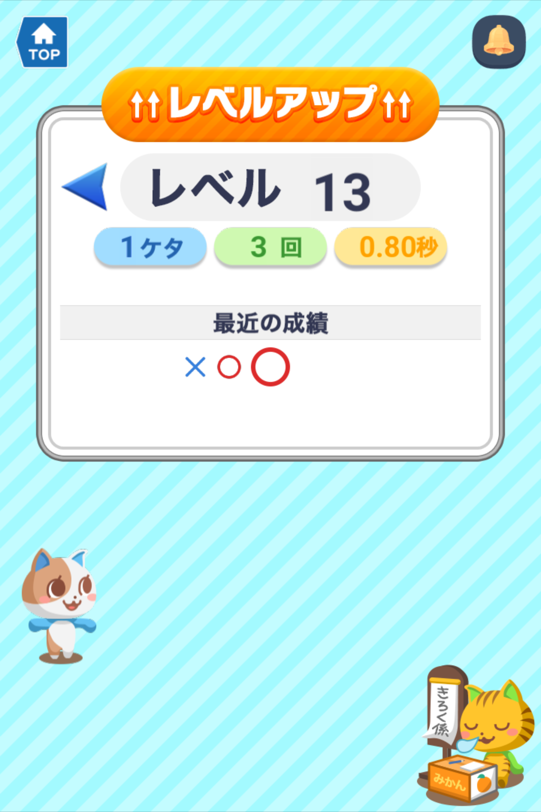 正解を続けることでレベルが上がり、難易度も徐々にアップ。