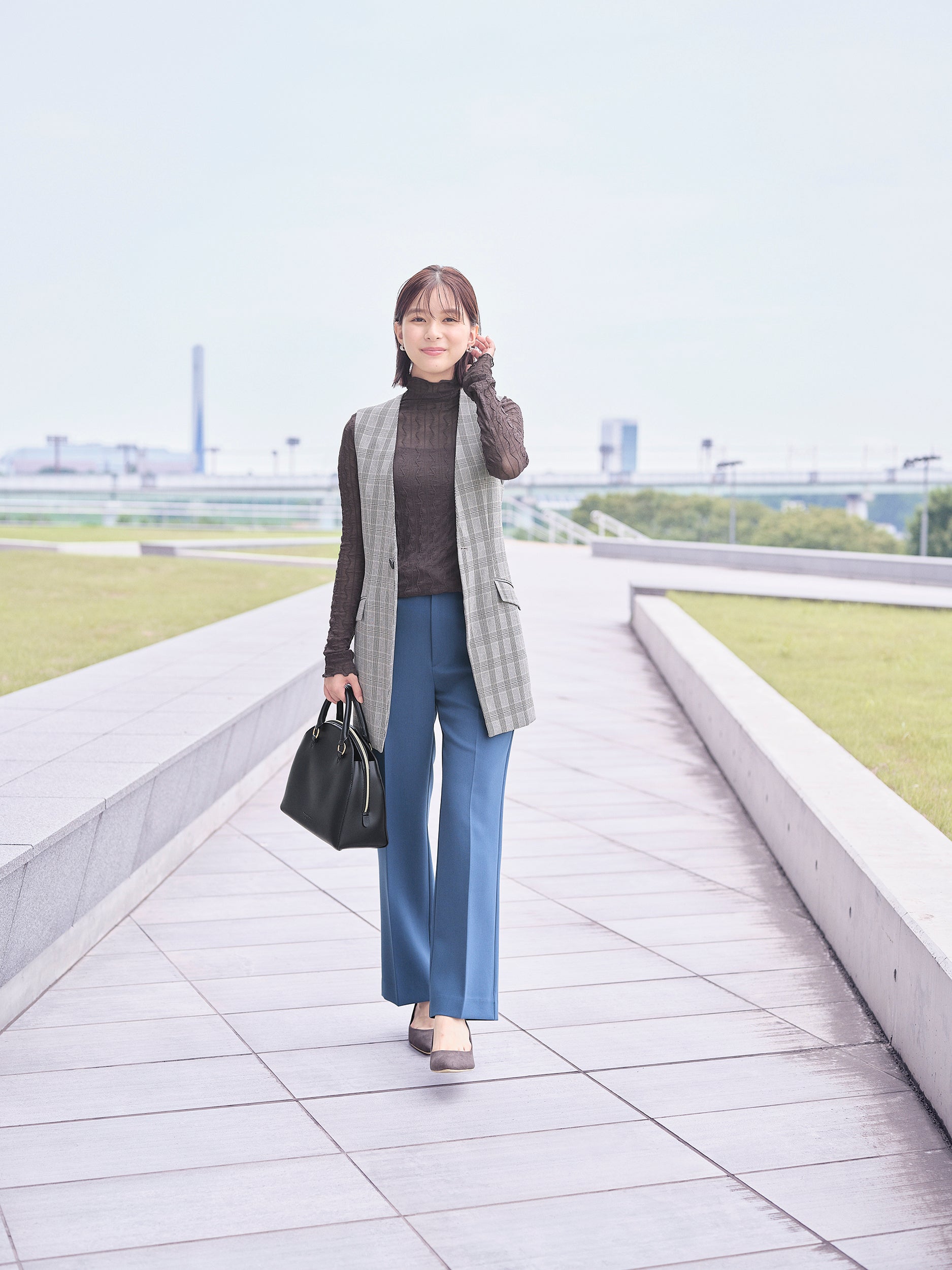 LOOK3 スリーブレスジャケットで魅せる、秋のオフィススタイル。