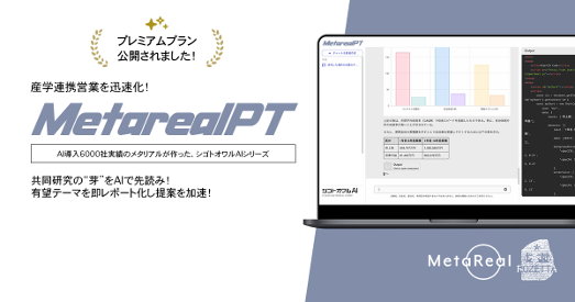 企業との共同研究意欲分析AIエージェント「Metareal リサーチパートナー(Metareal PT)」プレミアムプラン2/12提供開始